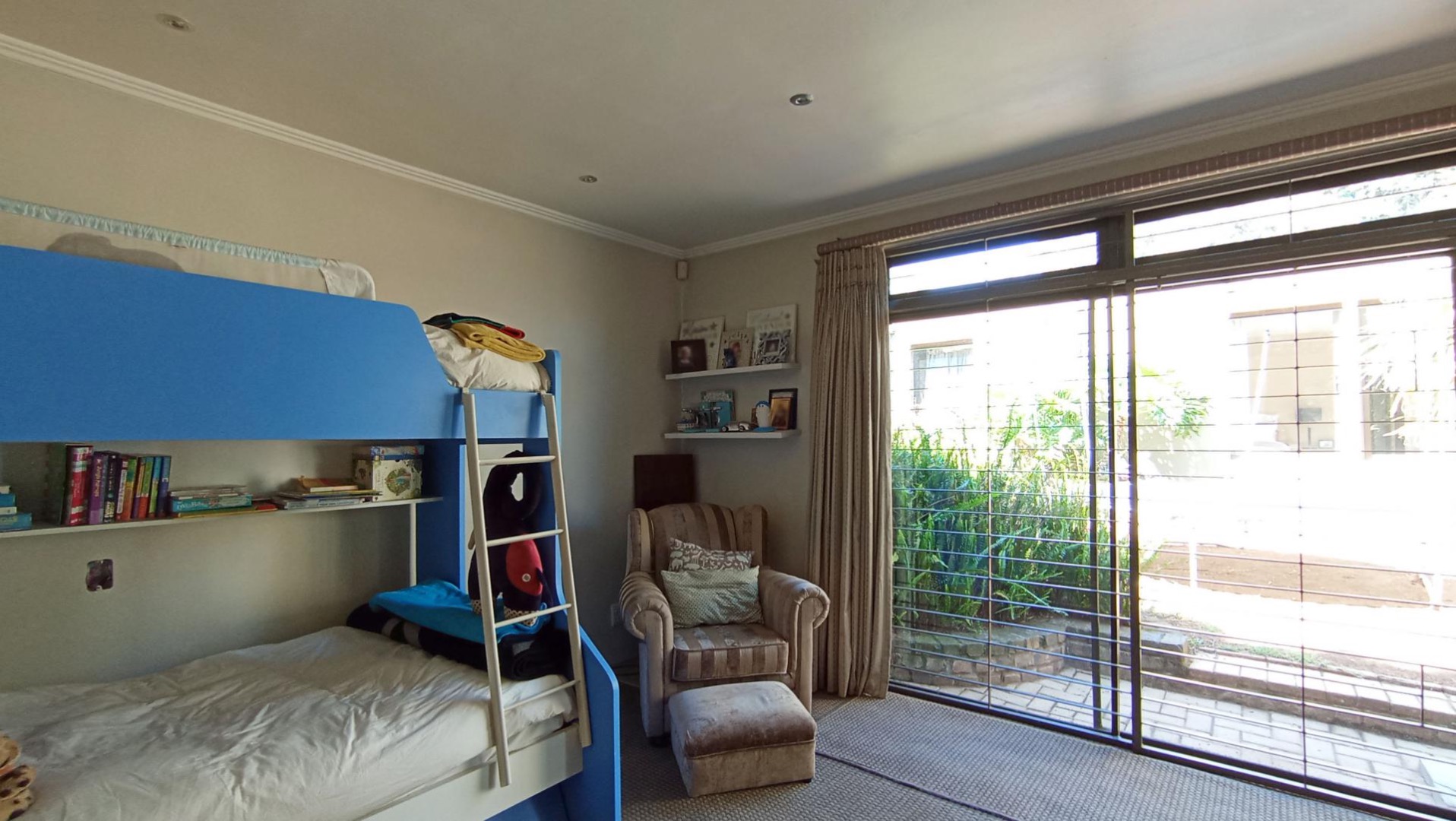 Outdoor living is a key highlight, with a well-maintained garden providing a serene backdrop for the home. The inviting pool offers a refreshing escape during warmer months, complementing the patio area for al fresco dining or simply enjoying the South African sunshine. Vehicle accommodation is generous, with four garages providing secure parking and additional storage space. Pets are welcome, making this an ideal family home.