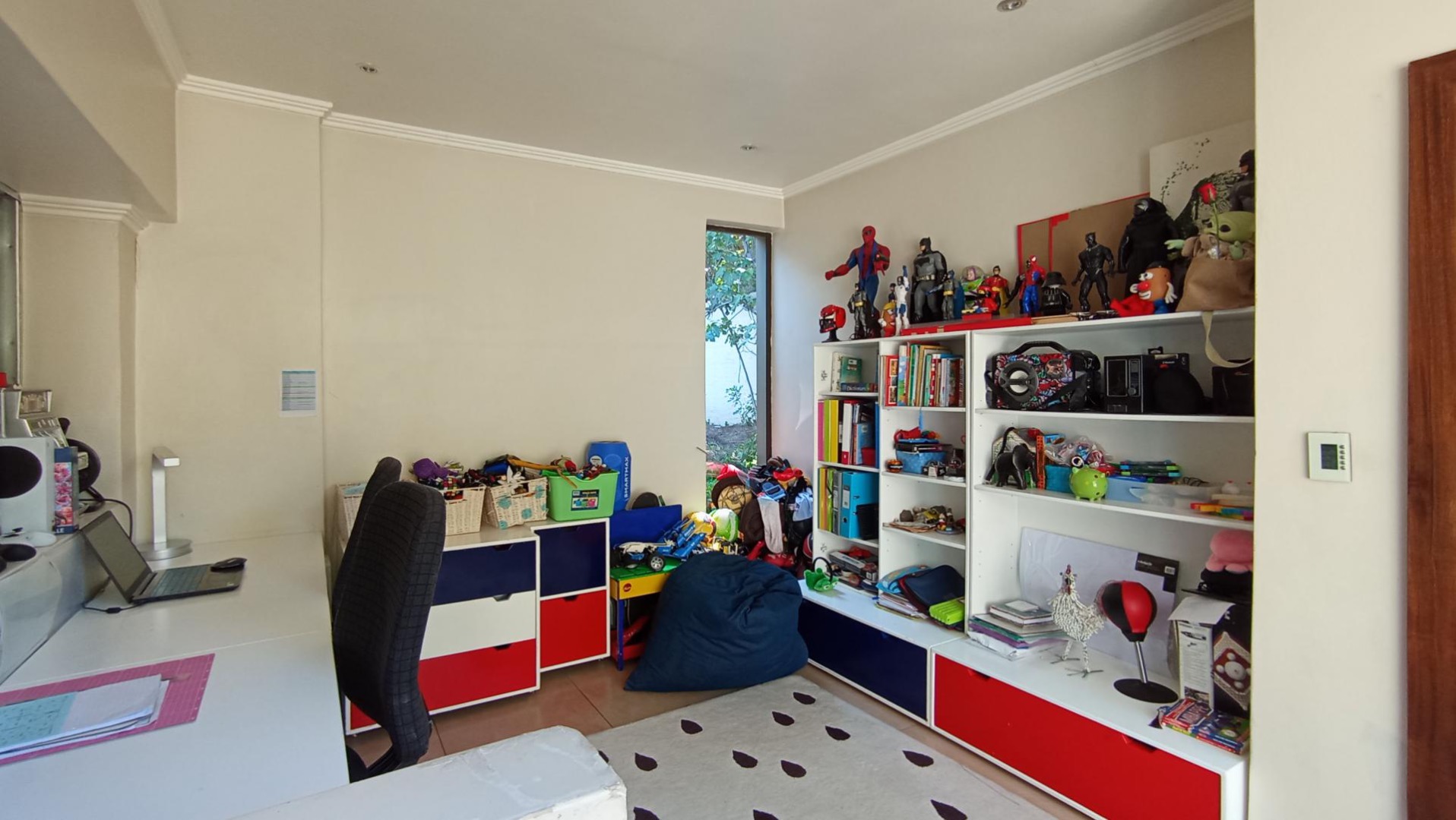 This expansive home features six comfortable bedrooms and three bathrooms, ensuring privacy and convenience for all residents. The bedrooms are designed for tranquility, with large windows inviting natural light and offering green views. Many rooms include extensive built-in storage, providing practical solutions for organization. A dedicated study offers a quiet space for work or contemplation, while the presence of staff quarters adds further utility to the property.