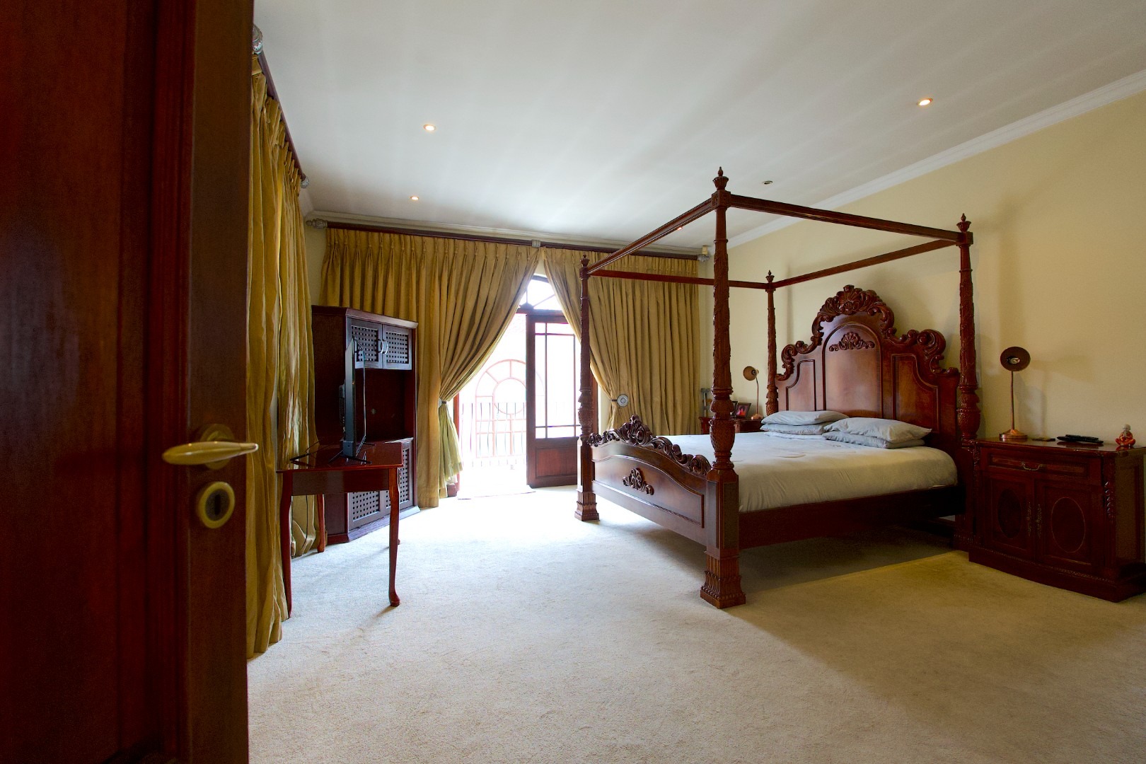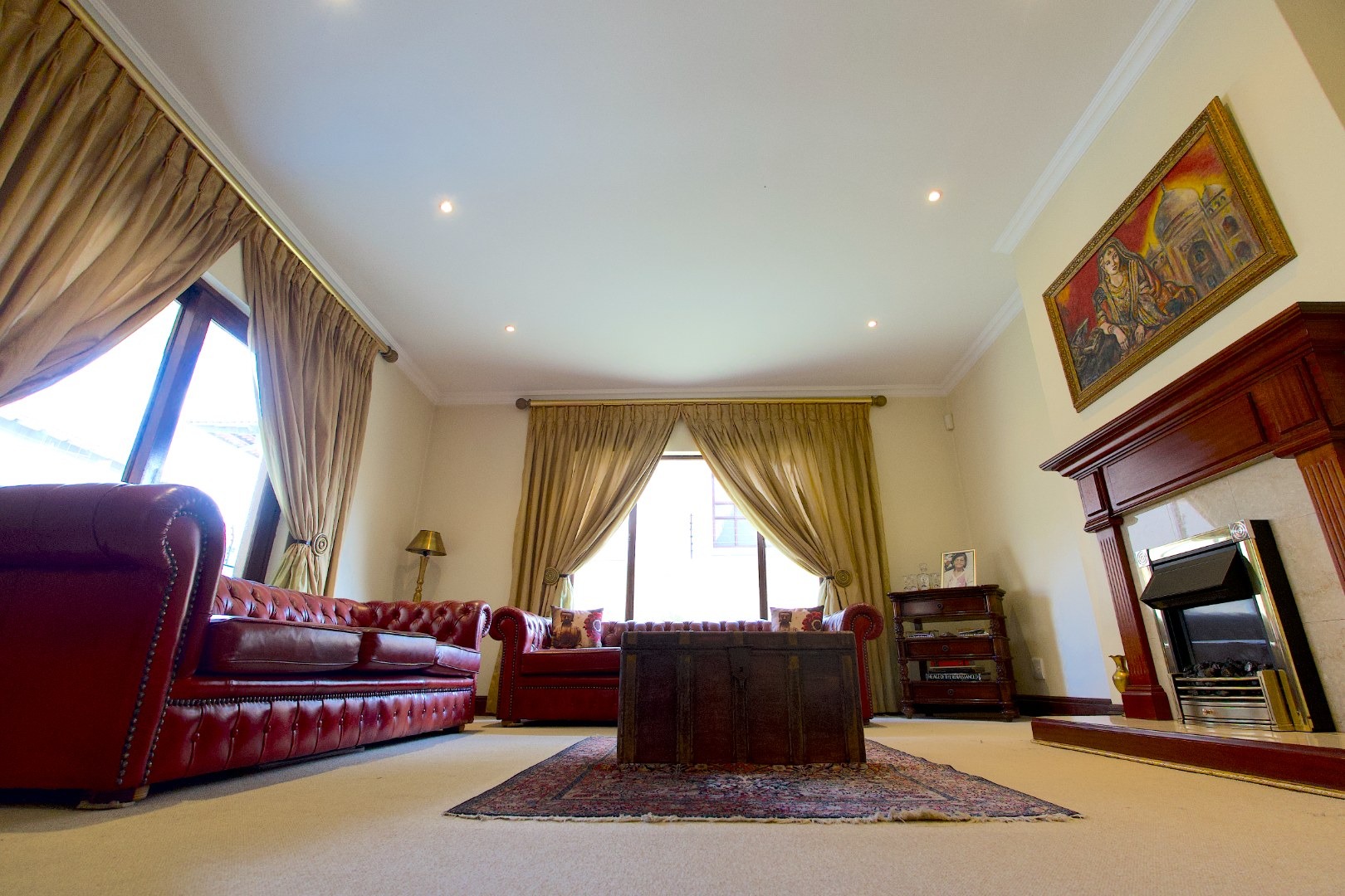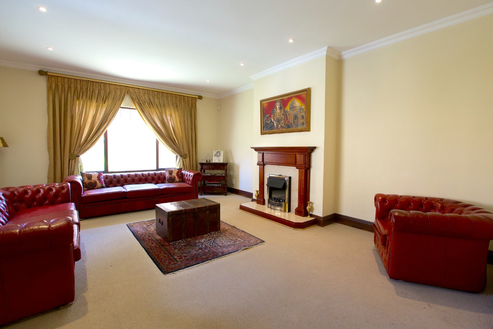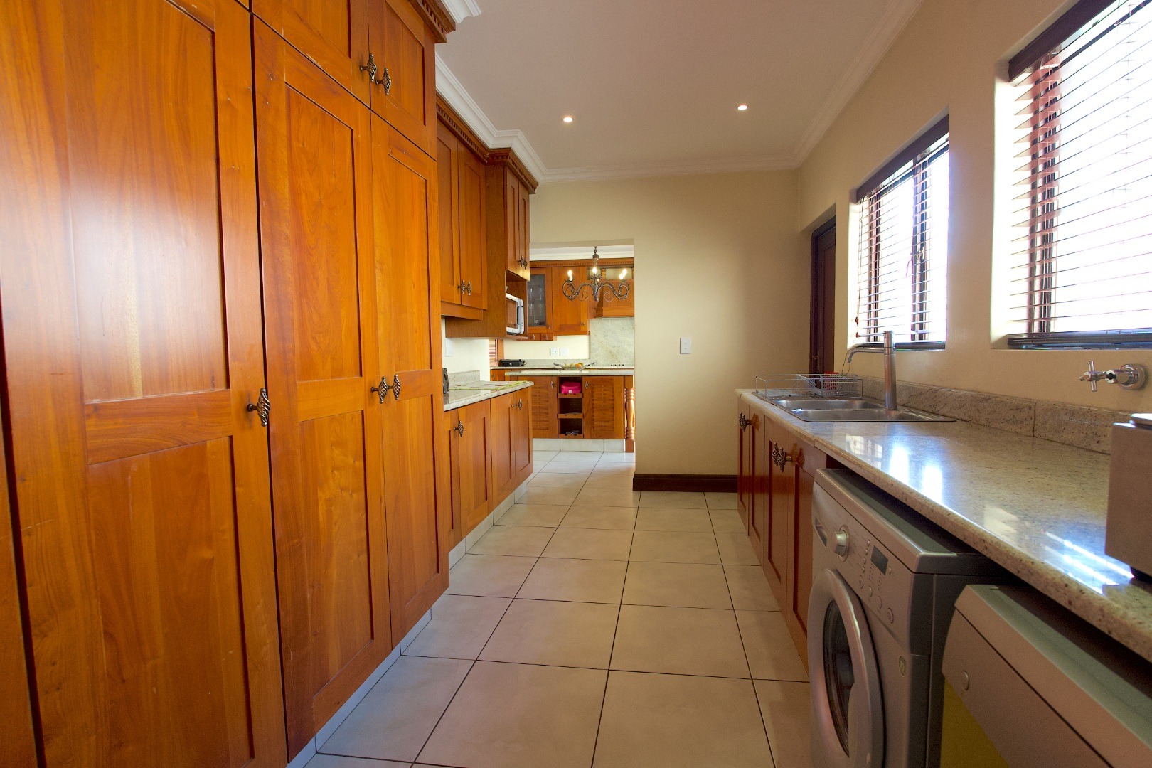 This family home offers four comfortable bedrooms and 3.5 bathrooms, including two luxurious ensuites and a convenient guest toilet. Staff quarters further enhance the property's functionality. Outdoors, residents can enjoy a private garden, a refreshing pool, a patio perfect for al fresco dining, and a built-in braai. Ample parking is available with a garage and two additional parking spaces.