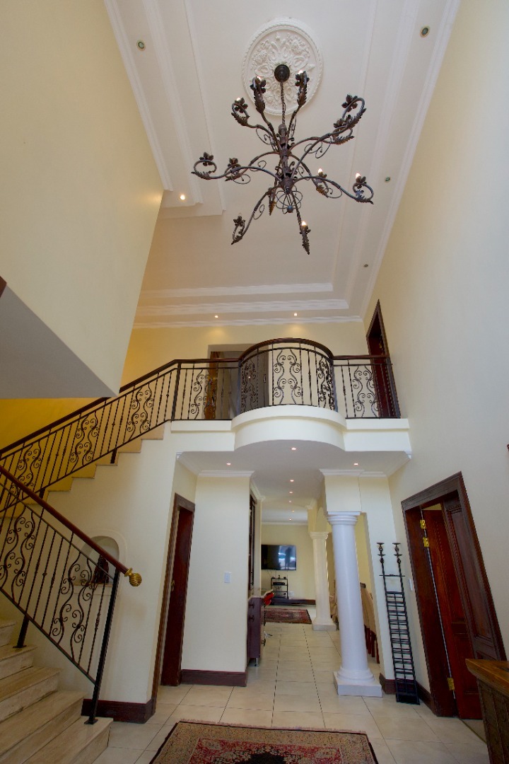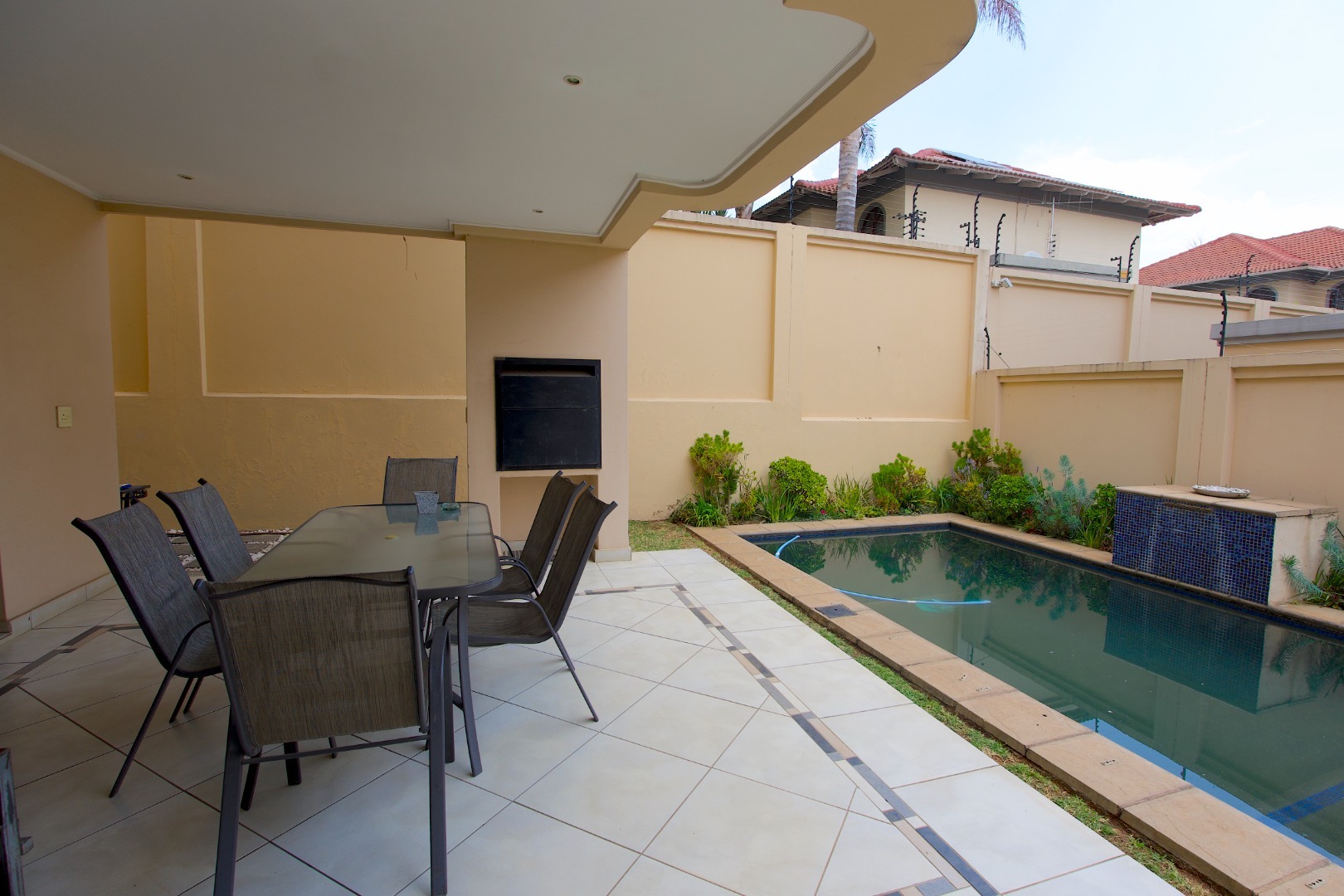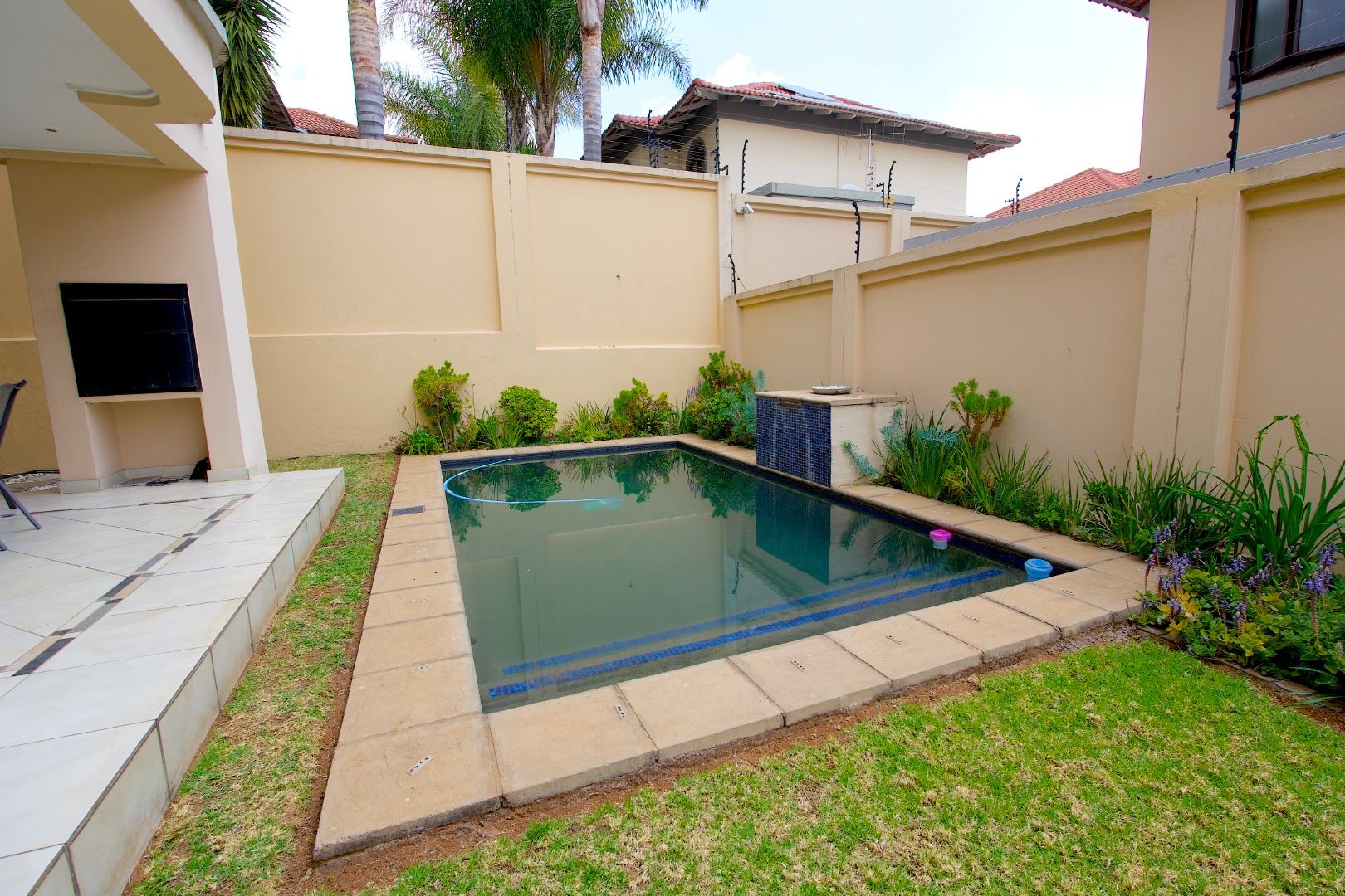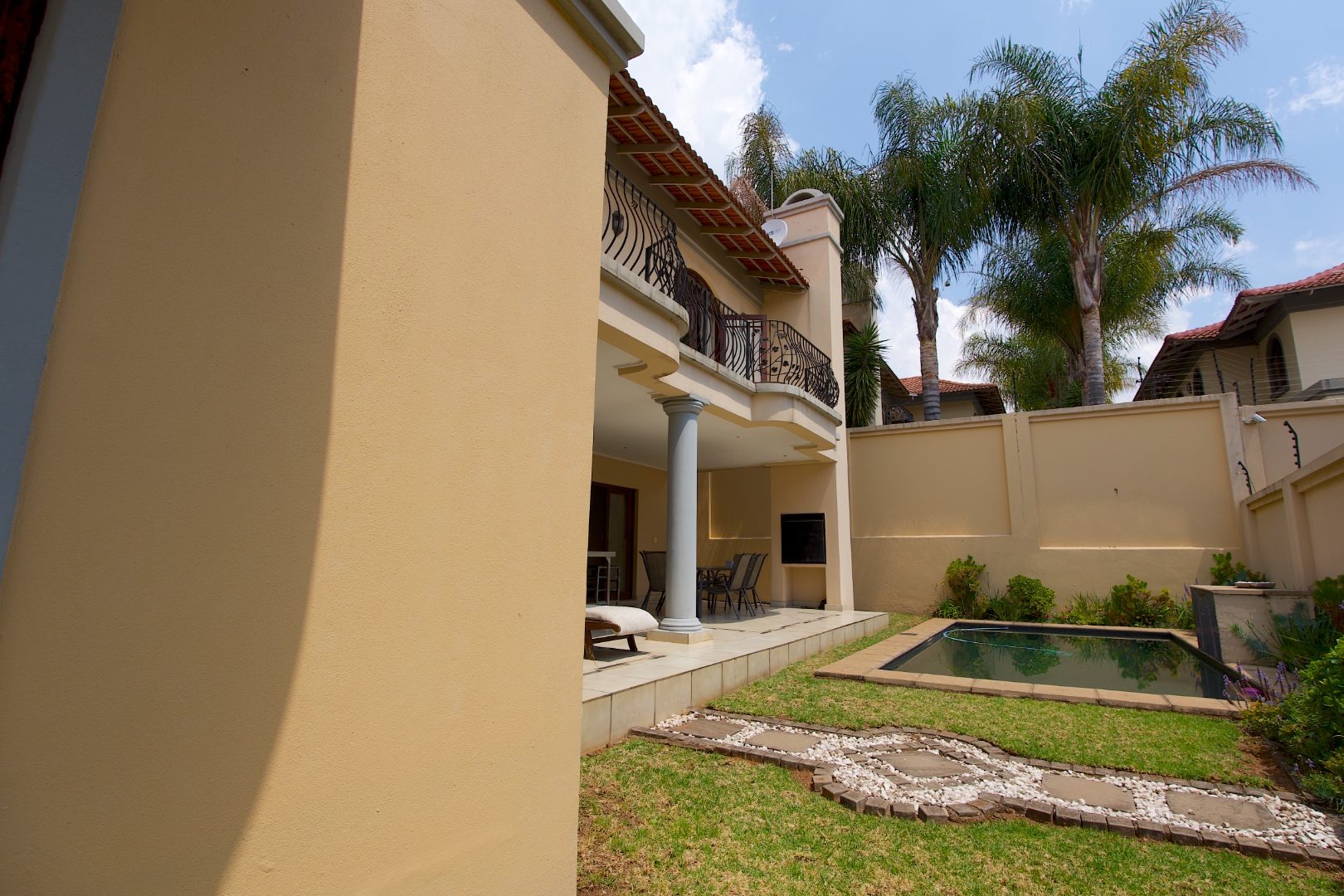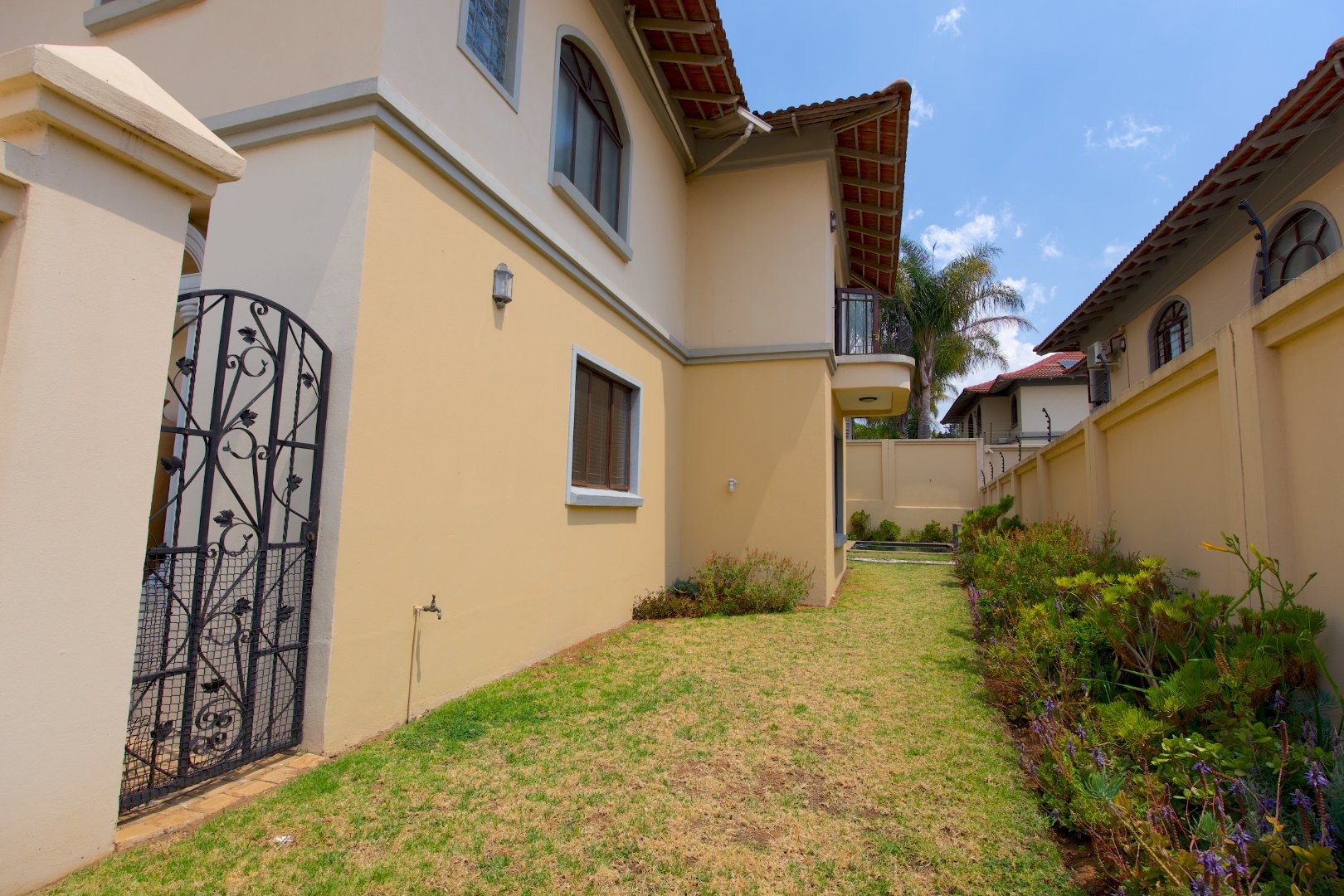 Nestled within a secure estate in the sought-after Sandown, Sandton, this Mediterranean/Tuscan style residence offers a blend of classic elegance and modern convenience. The property immediately impresses with its distinctive red tile roof, cream and light yellow exterior, and arched windows, complemented by a private paved driveway leading to an attached garage. With an expansive Floor Size of 541.00 sqm on a 648.00 sqm Erf, this home provides generous living spaces.