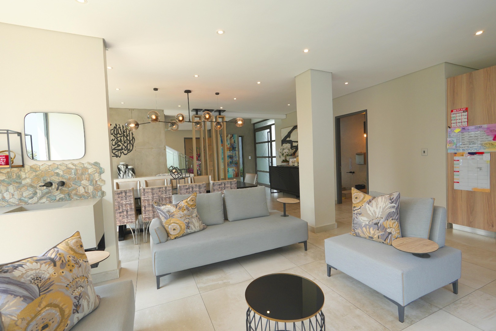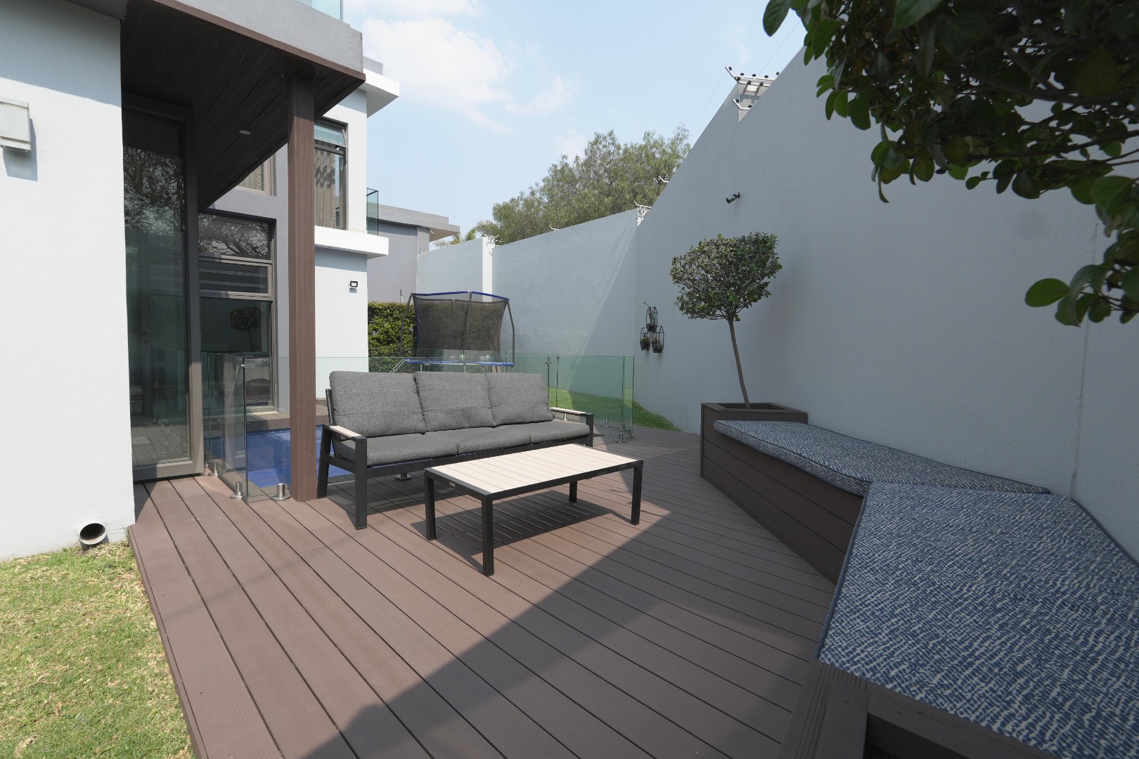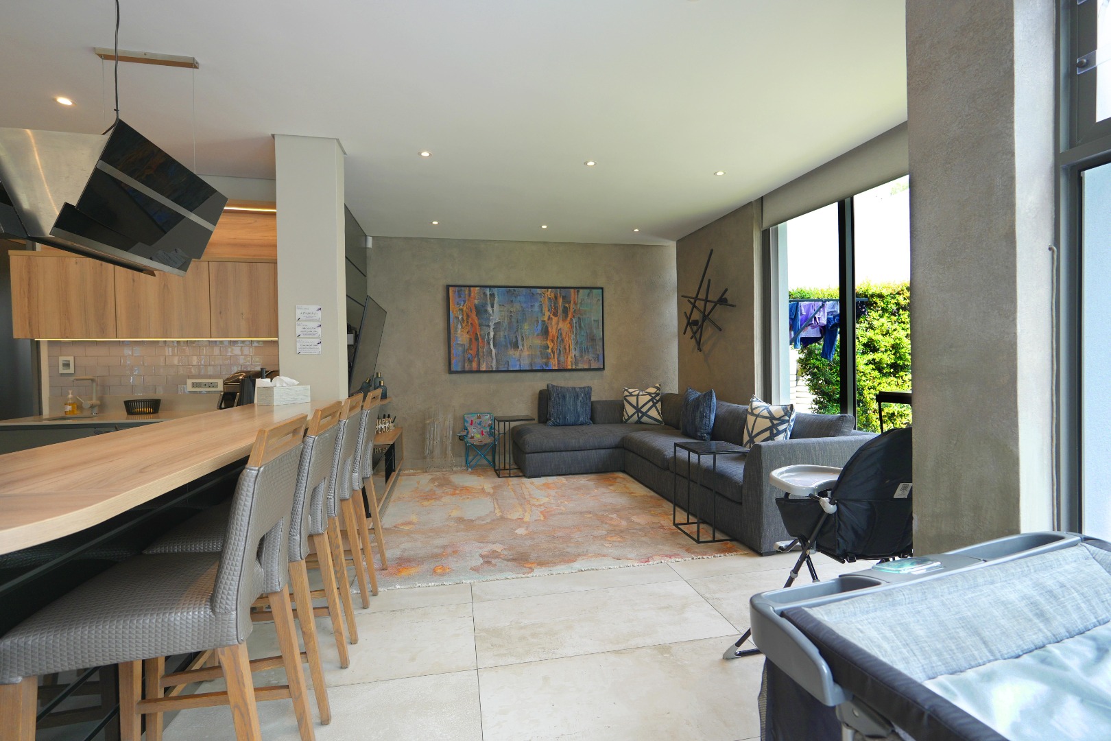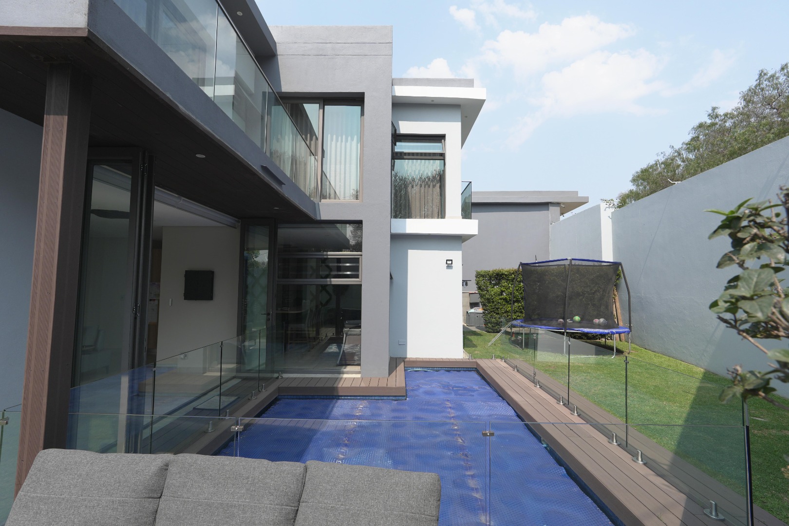 Welcome to your dream home, nestled in a lovely private estate right in the heart of Sandown, Sandton! As you step inside, you'll be captivated by the stunning design and luxurious touches throughout. The dining room features a cozy flueless gas fireplace, creating a warm and inviting atmosphere. You'll love the aluminium stack doors that open up from the living area to reveal a sparkling solar-heated pool and a beautifully manicured garden—perfect for relaxing or entertaining friends!