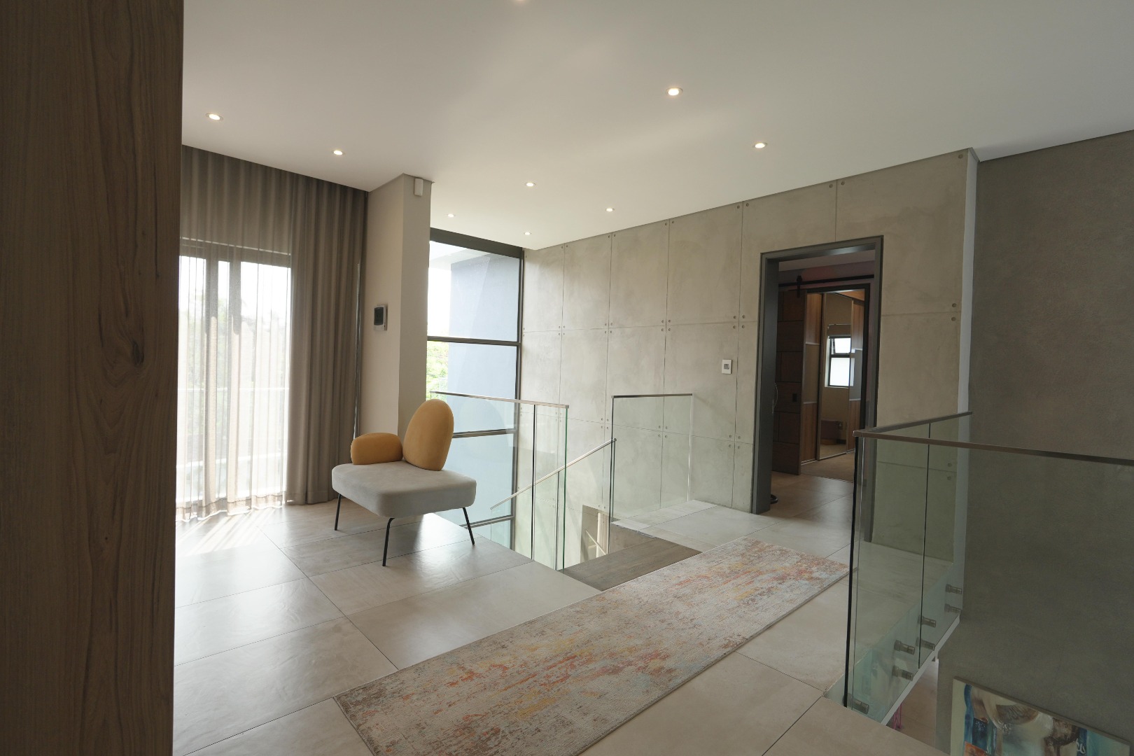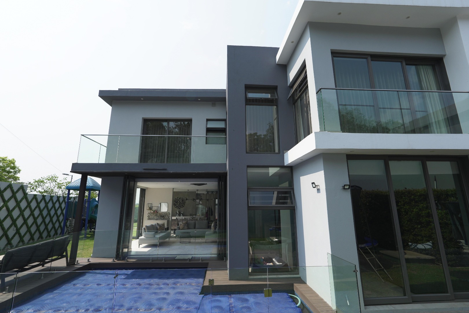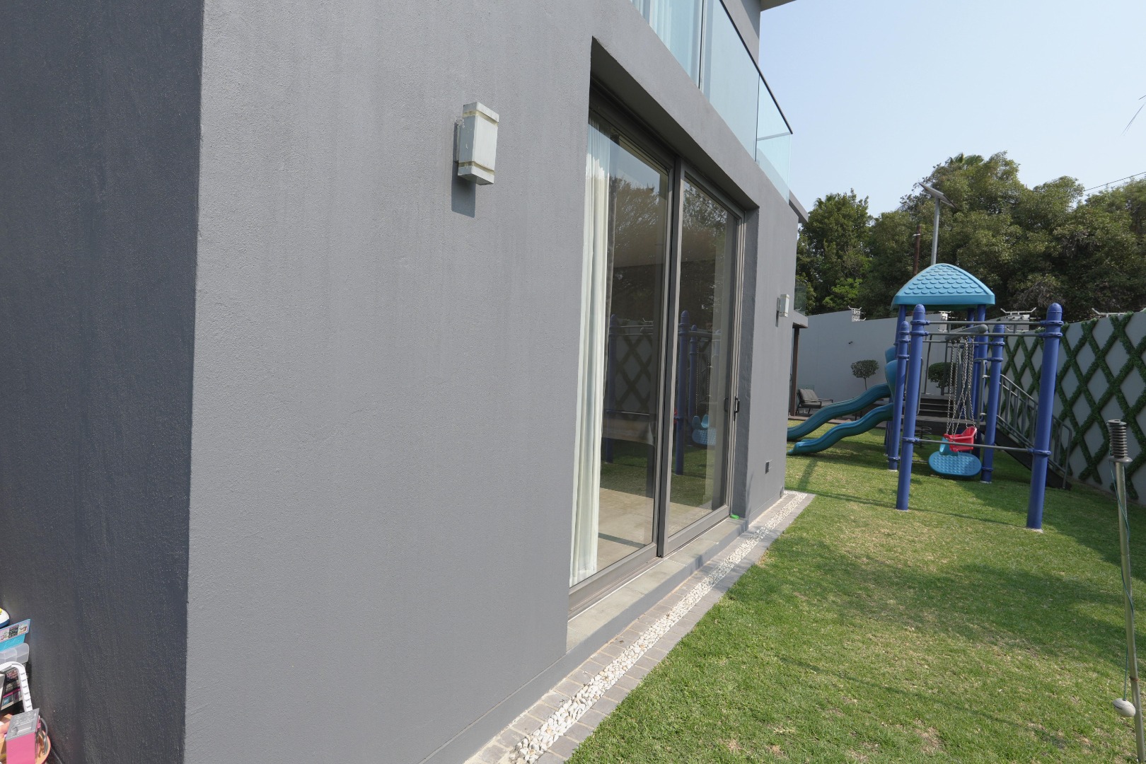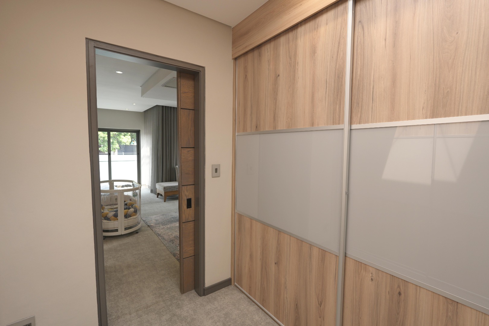 Welcome to your dream home, nestled in a lovely private estate right in the heart of Sandown, Sandton! As you step inside, you'll be captivated by the stunning design and luxurious touches throughout. The dining room features a cozy flueless gas fireplace, creating a warm and inviting atmosphere. You'll love the aluminium stack doors that open up from the living area to reveal a sparkling solar-heated pool and a beautifully manicured garden—perfect for relaxing or entertaining friends!