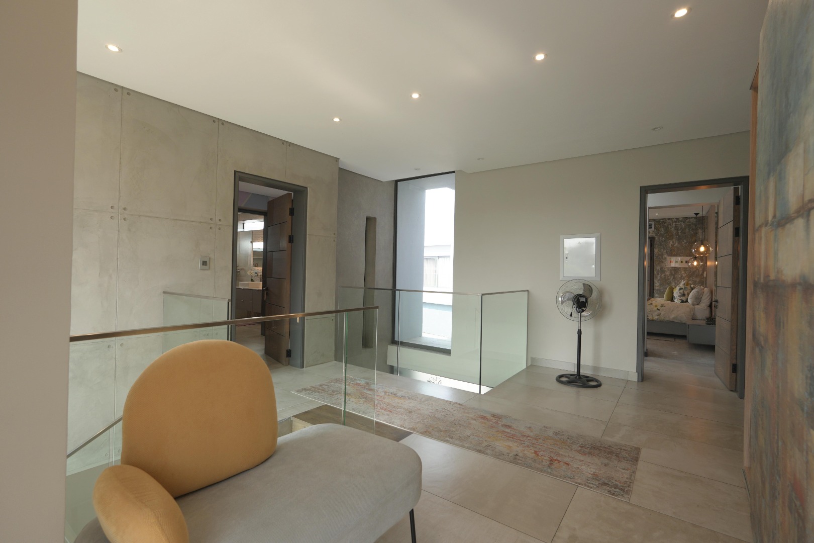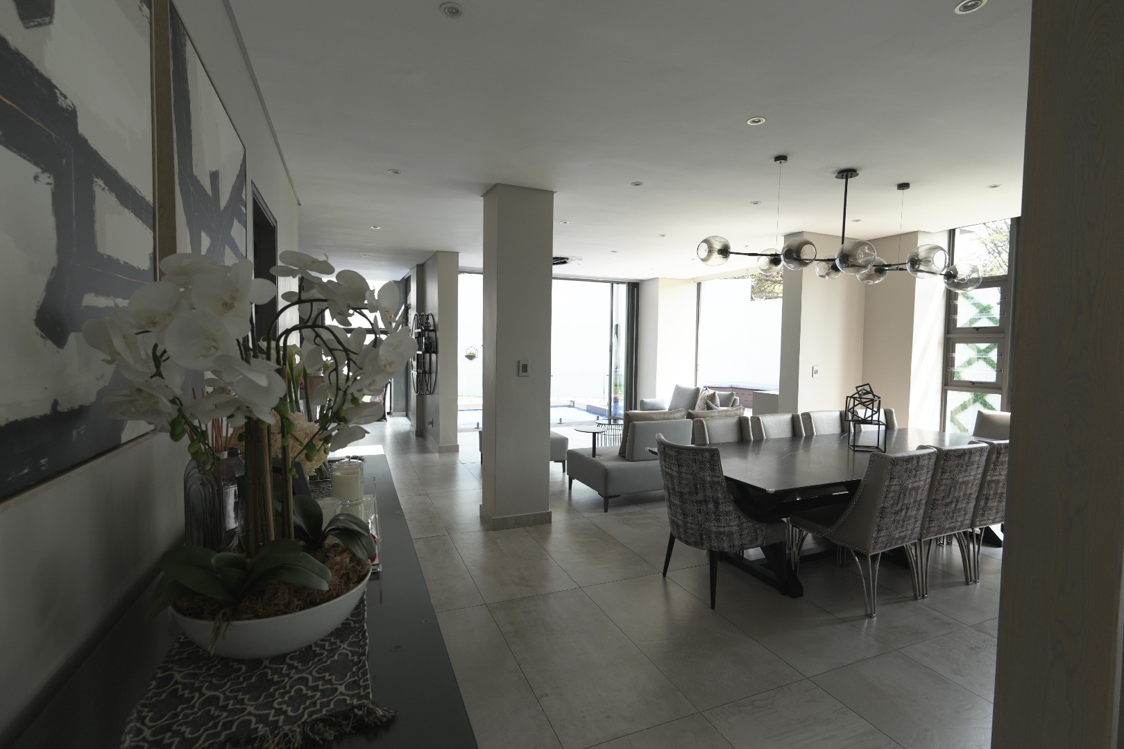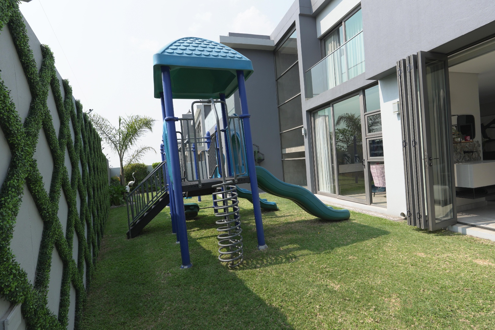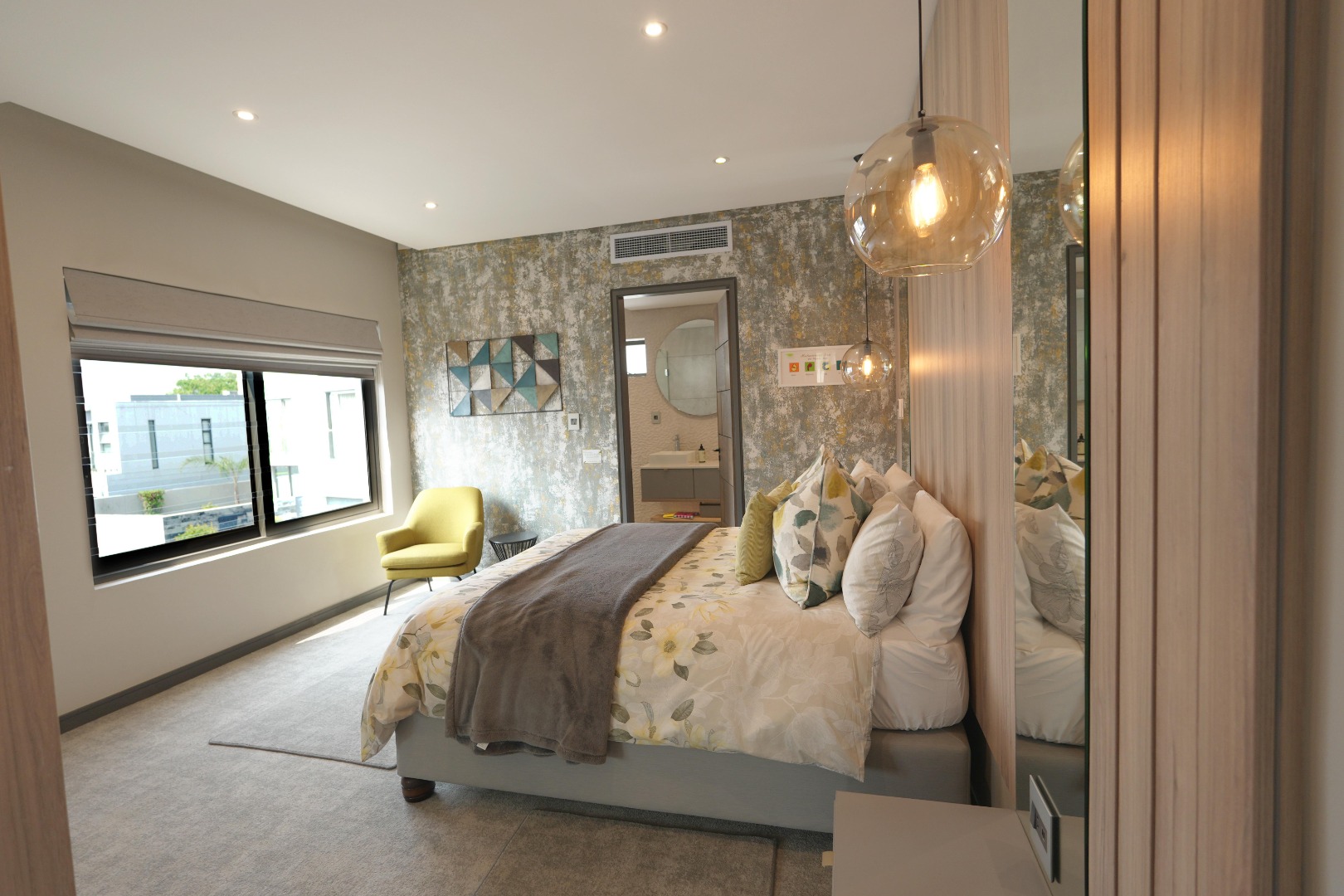 Welcome to your dream home, nestled in a lovely private estate right in the heart of Sandown, Sandton! As you step inside, you'll be captivated by the stunning design and luxurious touches throughout. The dining room features a cozy flueless gas fireplace, creating a warm and inviting atmosphere. You'll love the aluminium stack doors that open up from the living area to reveal a sparkling solar-heated pool and a beautifully manicured garden—perfect for relaxing or entertaining friends!