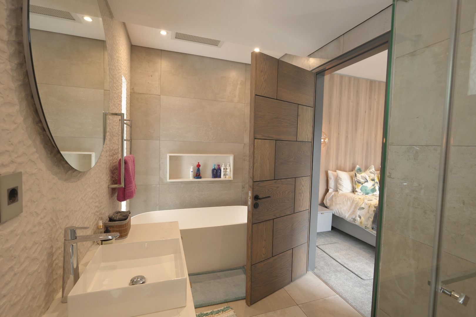 Upstairs, you’ll discover a serene landing area featuring a hidden kitchenette and a cozy spot to unwind. The four carpeted bedrooms all come with their own en-suite bathrooms. The main bedroom is a true retreat, offering a tranquil setting, plenty of storage, and a fabulous walk-in dressing room. Don’t forget about the private balcony where you can enjoy lovely views of the surrounding area!