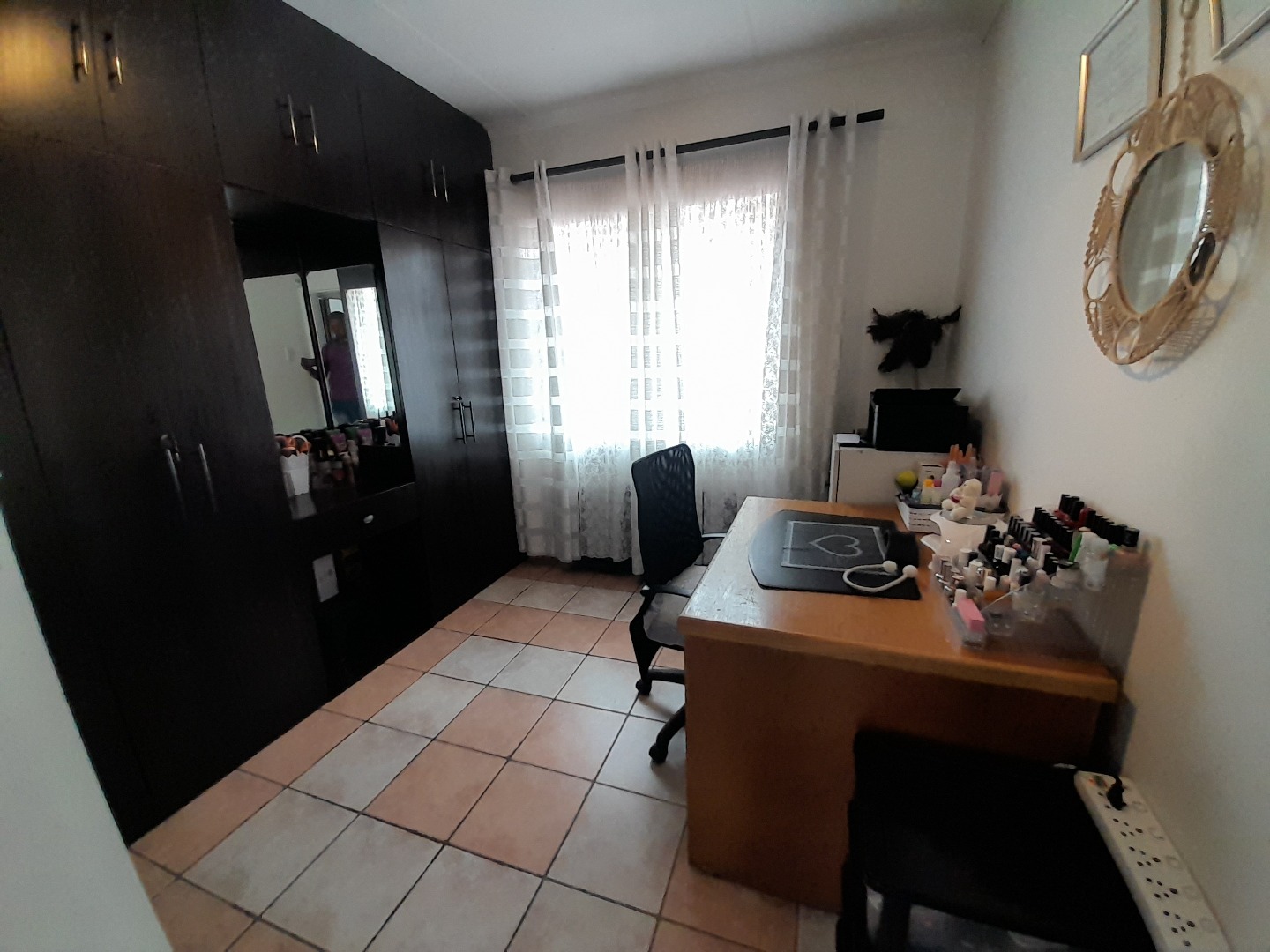 Outdoor amenities include a double garage, offering secure parking and additional storage solutions. The property is pet-friendly, catering to families with furry companions. Security is enhanced with burglar bars and a security gate, providing peace of mind within this residential setting.
