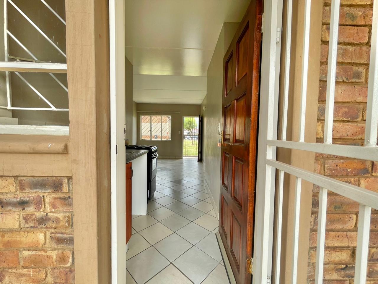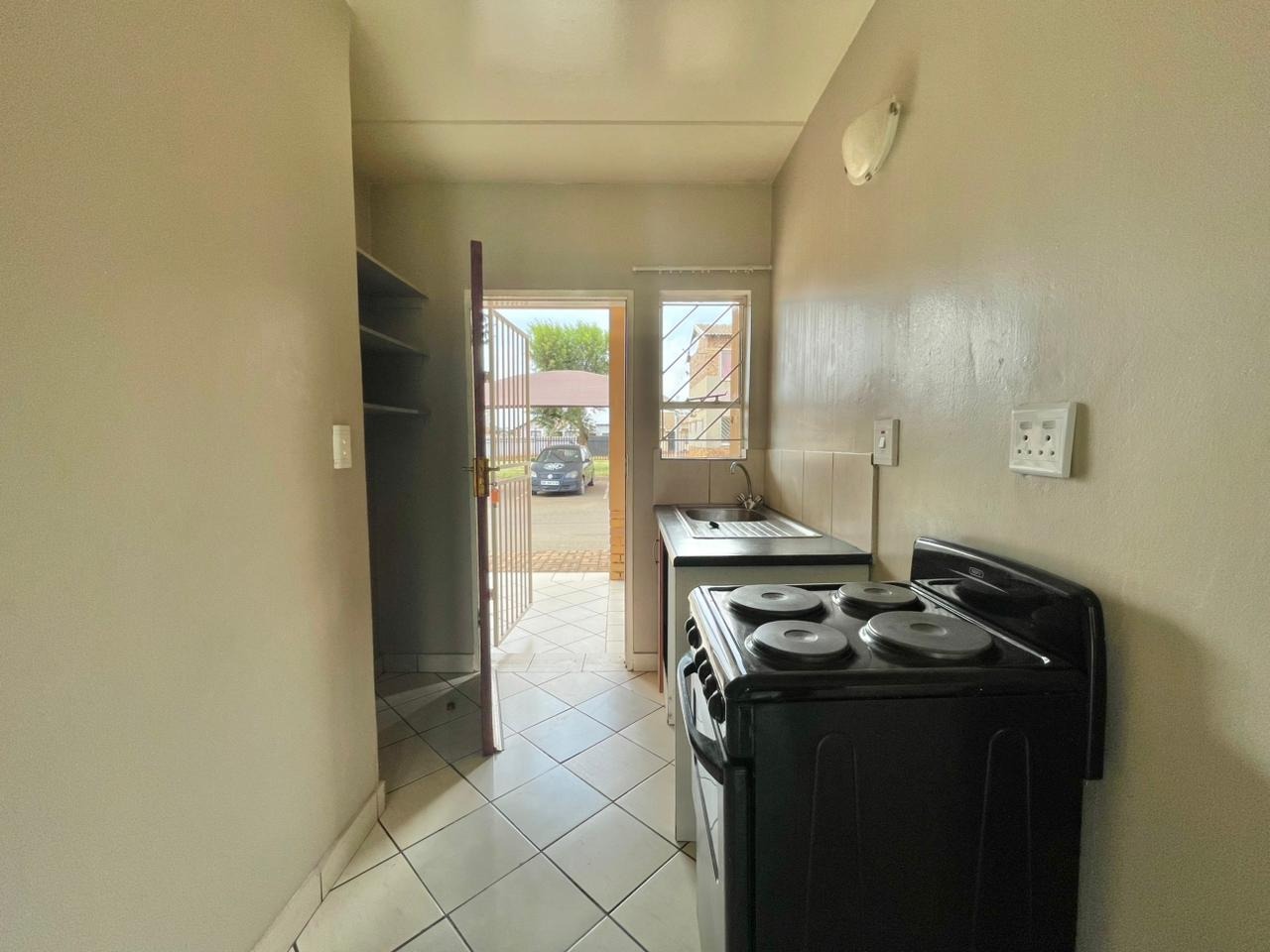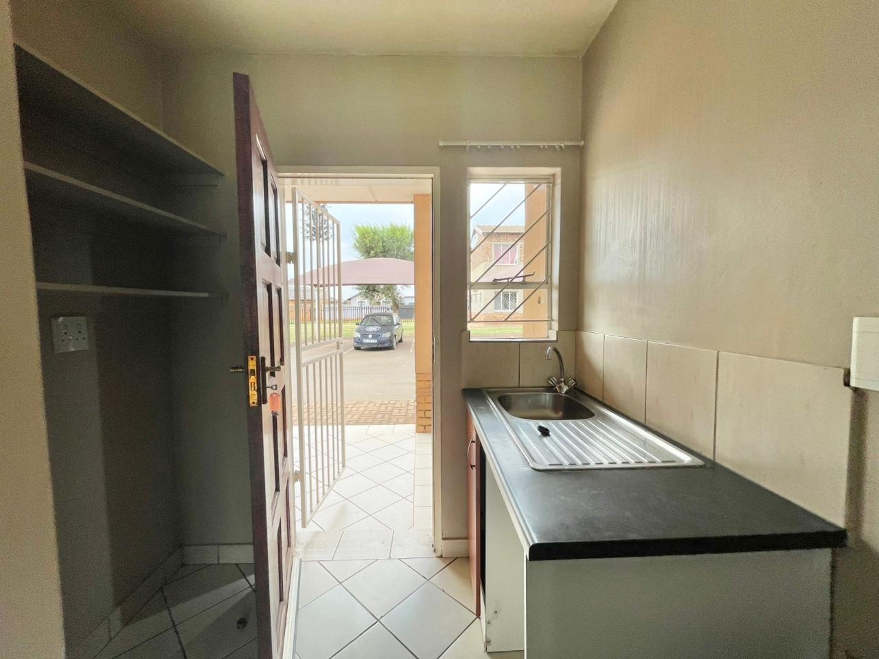 Discover this modern 2-bedroom unit situated within a secure complex in Protea Glen, Soweto. The property boasts an attractive exterior with a blend of tan painted surfaces and exposed brickwork, contributing to its appealing kerb appeal. The well-maintained communal outdoor spaces and paved pathways enhance the overall living environment, offering a welcoming first impression. Inside, this 42 sqm unit features an open-plan layout, seamlessly connecting the lounge and kitchen areas. The interior is designed for easy living with durable tiled flooring throughout and neutral wall colours, providing a versatile canvas for personal touches. The compact kitchen is equipped with essential amenities, including a stove, sink, and built-in shelving, catering to daily needs. A dedicated laundry facility adds to the convenience. The residence offers two comfortable bedrooms and a single bathroom, all maintaining the clean, light-coloured tiled aesthetic seen throughout the home. Large windows ensure good natural light, creating bright and airy living spaces. The property is also wheelchair friendly, ensuring accessibility. Outdoor features include a communal garden and paved areas, perfect for relaxation. The unit benefits from one dedicated parking space. Security is a paramount feature of this complex, offering residents peace of mind with 24-hour security, an access gate, security post, and electric fencing. The unit itself is further secured with burglar bars and security gates on doors and windows, and the entire complex is totally walled. Located in the vibrant suburban area of Protea Glen, this property offers a practical and secure living solution in Soweto, South Africa. It presents an excellent opportunity for those seeking a well-protected home within a community-focused environment. Key Features: * 2 Bedrooms, 1 Bathroom * 42 sqm Floor Size * Open-plan living area * Tiled flooring throughout * Secure complex with 24-hour security * Burglar bars and security gates * 1 Parking space * Communal garden and paved areas * Wheelchair friendly