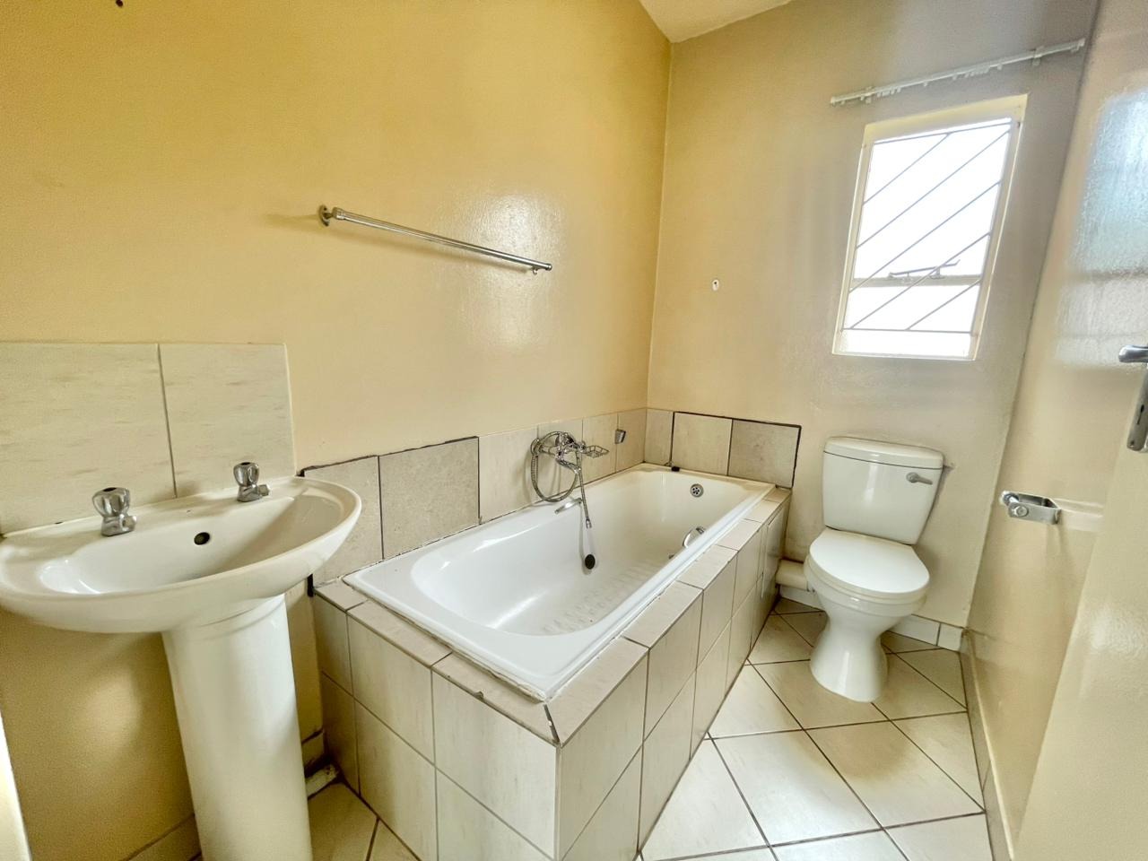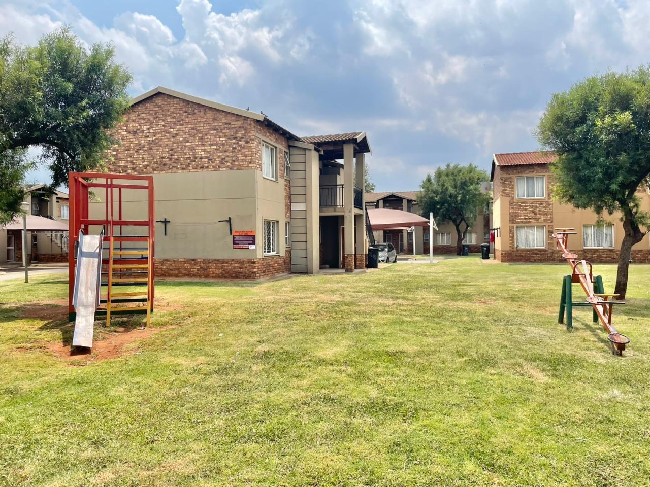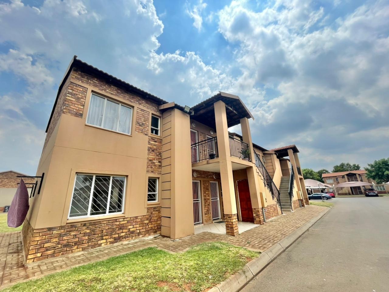 Discover this modern 2-bedroom unit situated within a secure complex in Protea Glen, Soweto. The property boasts an attractive exterior with a blend of tan painted surfaces and exposed brickwork, contributing to its appealing kerb appeal. The well-maintained communal outdoor spaces and paved pathways enhance the overall living environment, offering a welcoming first impression. Inside, this 42 sqm unit features an open-plan layout, seamlessly connecting the lounge and kitchen areas. The interior is designed for easy living with durable tiled flooring throughout and neutral wall colours, providing a versatile canvas for personal touches. The compact kitchen is equipped with essential amenities, including a stove, sink, and built-in shelving, catering to daily needs. A dedicated laundry facility adds to the convenience. The residence offers two comfortable bedrooms and a single bathroom, all maintaining the clean, light-coloured tiled aesthetic seen throughout the home. Large windows ensure good natural light, creating bright and airy living spaces. The property is also wheelchair friendly, ensuring accessibility. Outdoor features include a communal garden and paved areas, perfect for relaxation. The unit benefits from one dedicated parking space. Security is a paramount feature of this complex, offering residents peace of mind with 24-hour security, an access gate, security post, and electric fencing. The unit itself is further secured with burglar bars and security gates on doors and windows, and the entire complex is totally walled. Located in the vibrant suburban area of Protea Glen, this property offers a practical and secure living solution in Soweto, South Africa. It presents an excellent opportunity for those seeking a well-protected home within a community-focused environment. Key Features: * 2 Bedrooms, 1 Bathroom * 42 sqm Floor Size * Open-plan living area * Tiled flooring throughout * Secure complex with 24-hour security * Burglar bars and security gates * 1 Parking space * Communal garden and paved areas * Wheelchair friendly