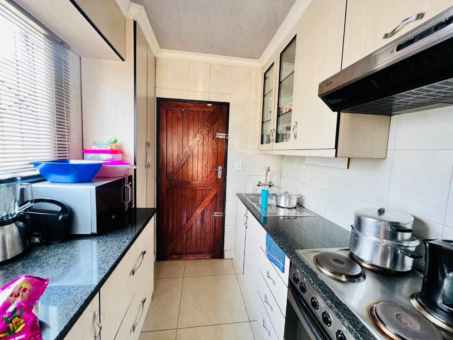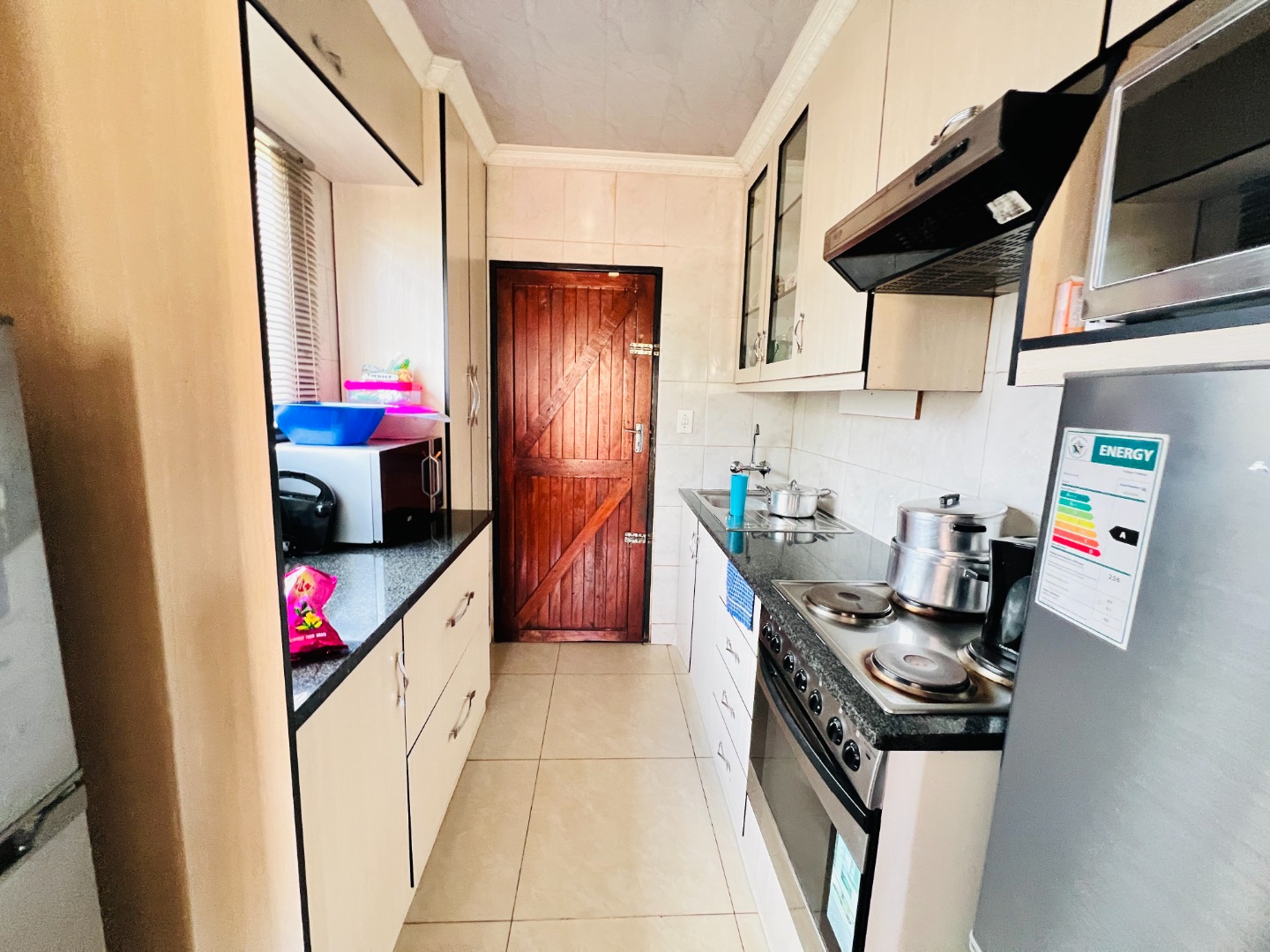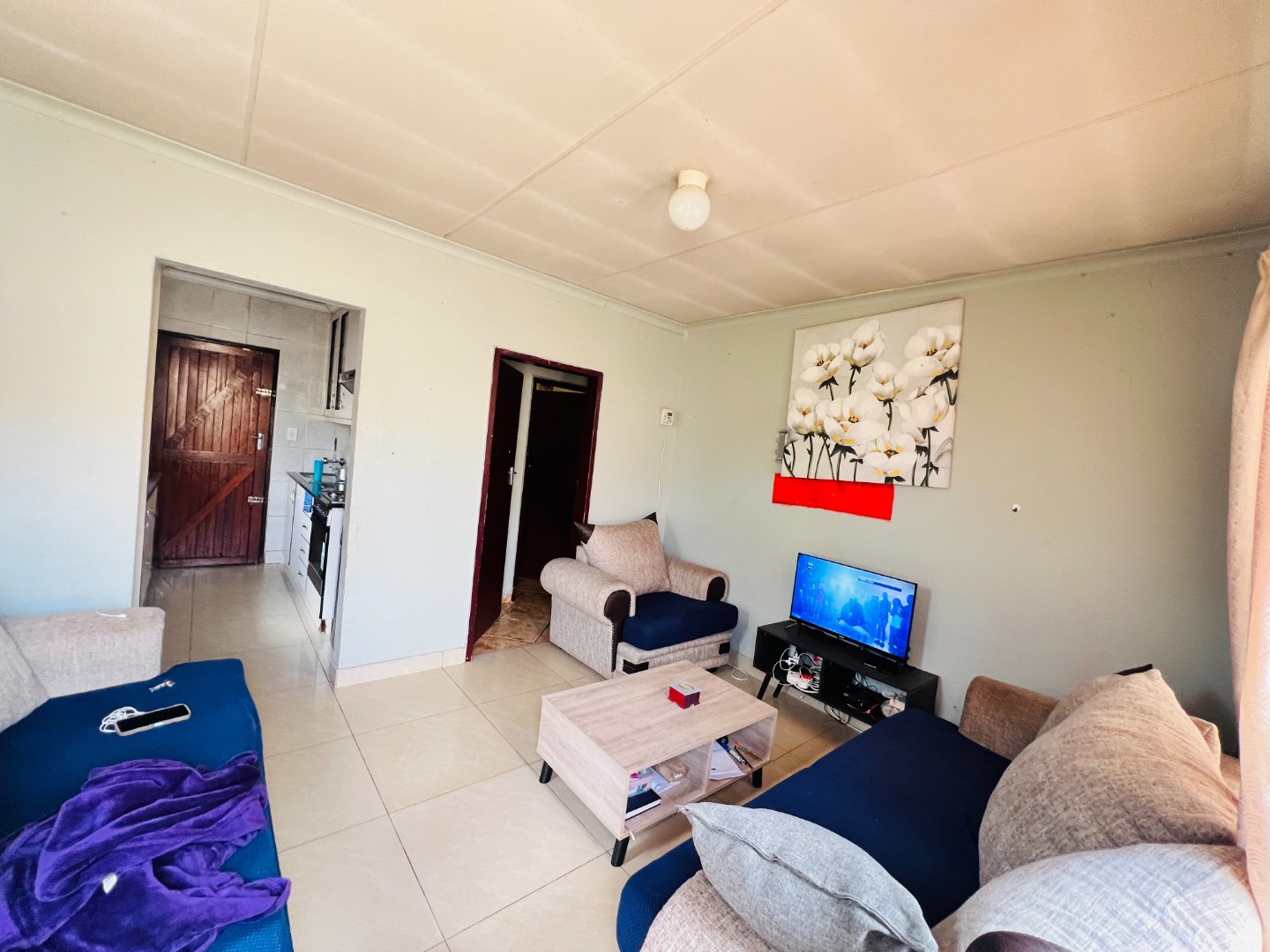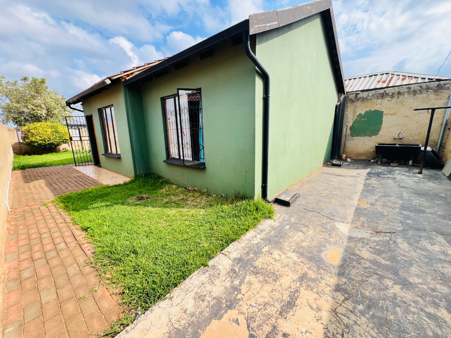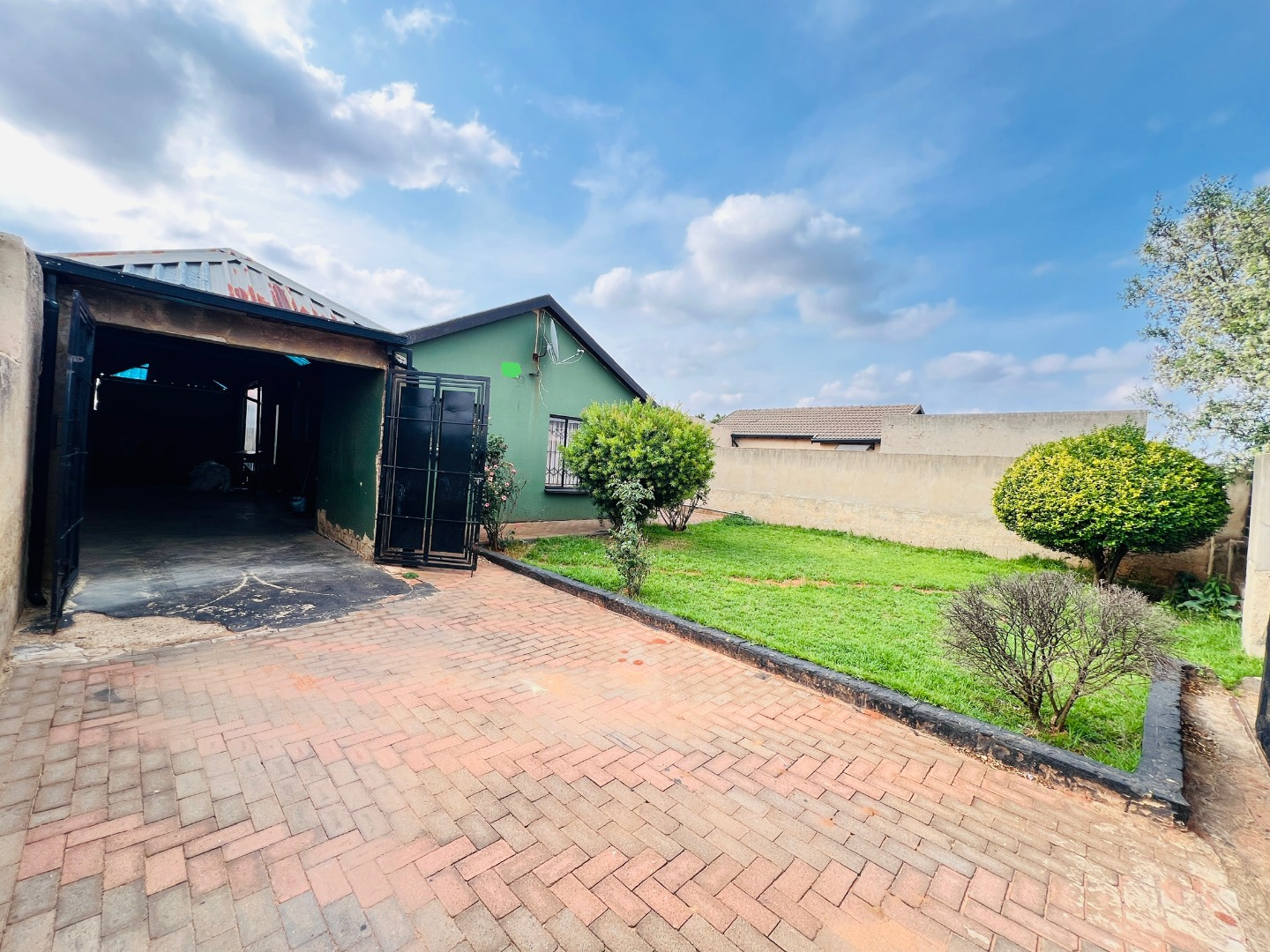 Nestled in the vibrant community of Protea Glen, this residential property in Soweto offers a convenient lifestyle within a well-established neighbourhood. This area is known for its accessibility and community spirit, making it an ideal location for families and individuals alike. Presenting a welcoming kerb appeal, this green-painted home is set on a manageable 250 sqm erf. The property boasts a secure, fenced perimeter with concrete boundary walls and an access gate, ensuring privacy. A generous paved driveway and courtyard provide ample parking for up to three vehicles, including a covered carport. Established greenery adds natural charm to the front yard, offering potential for further landscaping. Step inside to discover a functional 104 sqm floor plan designed for comfortable living. The open-plan lounge and kitchen area create a cohesive space, perfect for daily routines and entertaining. The kitchen is a highlight, featuring modern light-colored cabinetry, dark countertops, a built-in stove with an oven, and an overhead extractor fan. Tiled flooring extends throughout these communal areas, ensuring easy maintenance and a clean aesthetic. Natural light streams in through well-placed windows, illuminating the space. This home offers two comfortable bedrooms, each providing a private retreat. The main bedroom features practical built-in cabinetry, maximizing storage and space around the bed, complemented by a vibrant blue accent wall that adds personality. A single well-appointed bathroom serves the household, designed for everyday convenience. Security bars on windows provide an added layer of safety. While presenting a solid foundation, this property offers an excellent opportunity for personalization and modern updates to truly make it your own. Its practical layout and secure features make it an attractive option for first-time buyers or as an investment property in this dynamic market. Key Features: * 2 Bedrooms, 1 Bathroom * 1 Lounge, 1 Kitchen * Erf Size: 250 sqm, Floor Size: 104 sqm * Paved Driveway with Covered Carport * Secure Fenced Property with Access Gate * Modern Kitchen with Built-in Stove * Tiled Flooring Throughout * Built-in Bedroom Cabinetry * Ample Parking for 3 Vehicles
