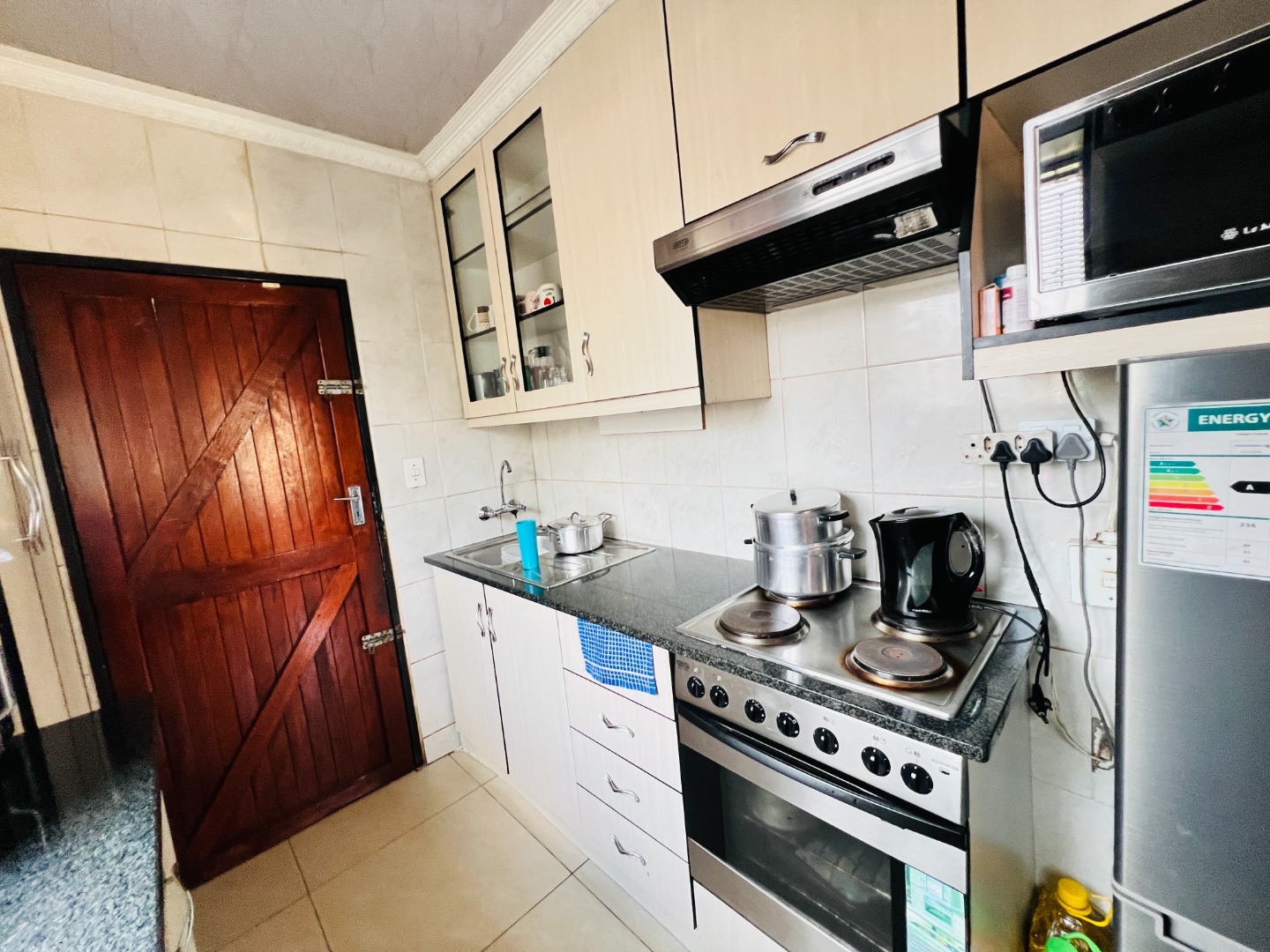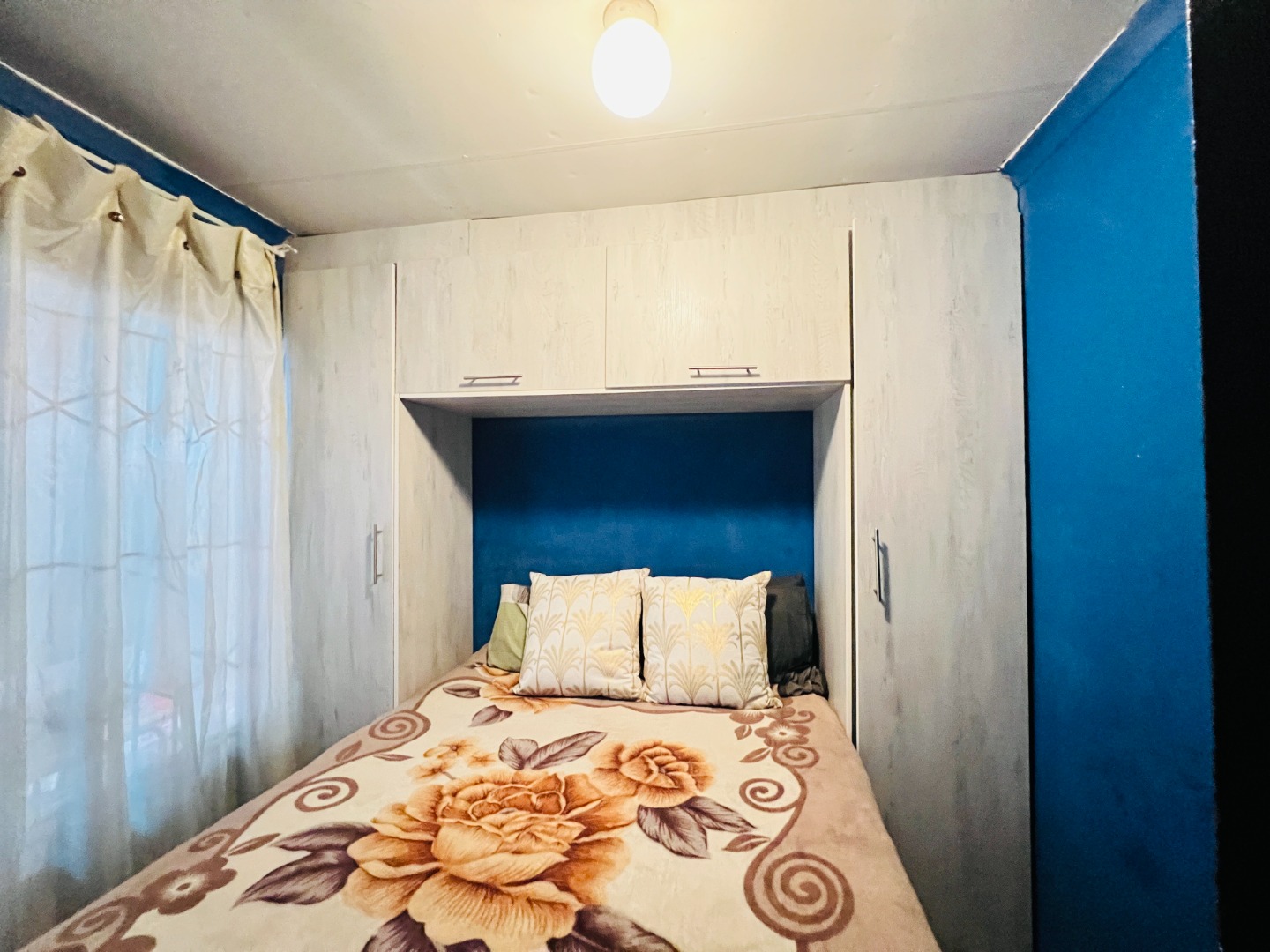 Nestled in the vibrant community of Protea Glen, this residential property in Soweto offers a convenient lifestyle within a well-established neighbourhood. This area is known for its accessibility and community spirit, making it an ideal location for families and individuals alike. Presenting a welcoming kerb appeal, this green-painted home is set on a manageable 250 sqm erf. The property boasts a secure, fenced perimeter with concrete boundary walls and an access gate, ensuring privacy. A generous paved driveway and courtyard provide ample parking for up to three vehicles, including a covered carport. Established greenery adds natural charm to the front yard, offering potential for further landscaping. Step inside to discover a functional 104 sqm floor plan designed for comfortable living. The open-plan lounge and kitchen area create a cohesive space, perfect for daily routines and entertaining. The kitchen is a highlight, featuring modern light-colored cabinetry, dark countertops, a built-in stove with an oven, and an overhead extractor fan. Tiled flooring extends throughout these communal areas, ensuring easy maintenance and a clean aesthetic. Natural light streams in through well-placed windows, illuminating the space. This home offers two comfortable bedrooms, each providing a private retreat. The main bedroom features practical built-in cabinetry, maximizing storage and space around the bed, complemented by a vibrant blue accent wall that adds personality. A single well-appointed bathroom serves the household, designed for everyday convenience. Security bars on windows provide an added layer of safety. While presenting a solid foundation, this property offers an excellent opportunity for personalization and modern updates to truly make it your own. Its practical layout and secure features make it an attractive option for first-time buyers or as an investment property in this dynamic market. Key Features: * 2 Bedrooms, 1 Bathroom * 1 Lounge, 1 Kitchen * Erf Size: 250 sqm, Floor Size: 104 sqm * Paved Driveway with Covered Carport * Secure Fenced Property with Access Gate * Modern Kitchen with Built-in Stove * Tiled Flooring Throughout * Built-in Bedroom Cabinetry * Ample Parking for 3 Vehicles