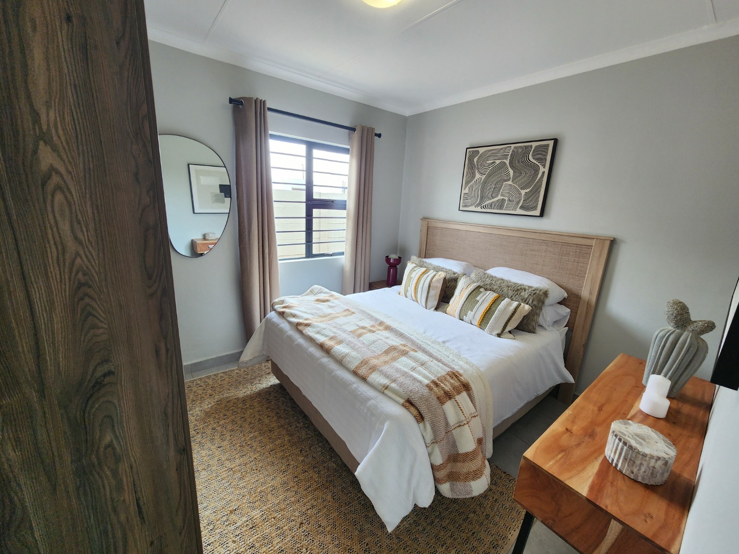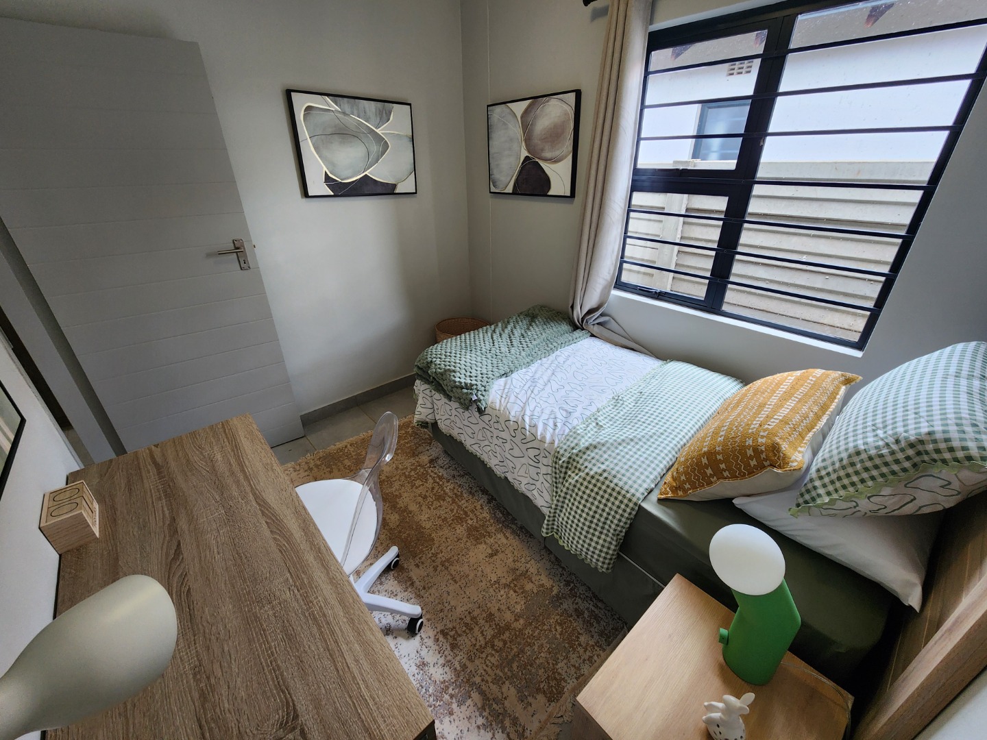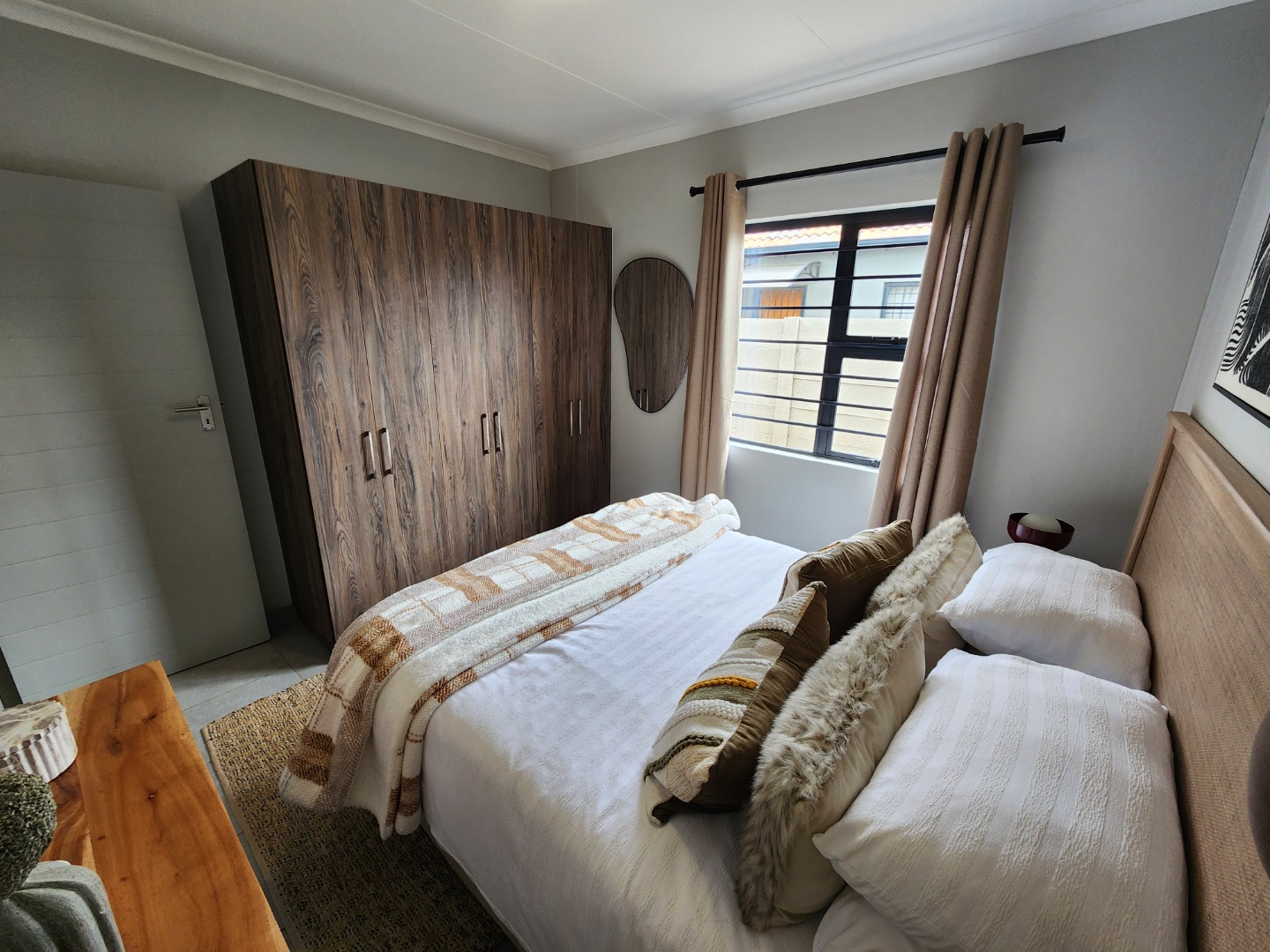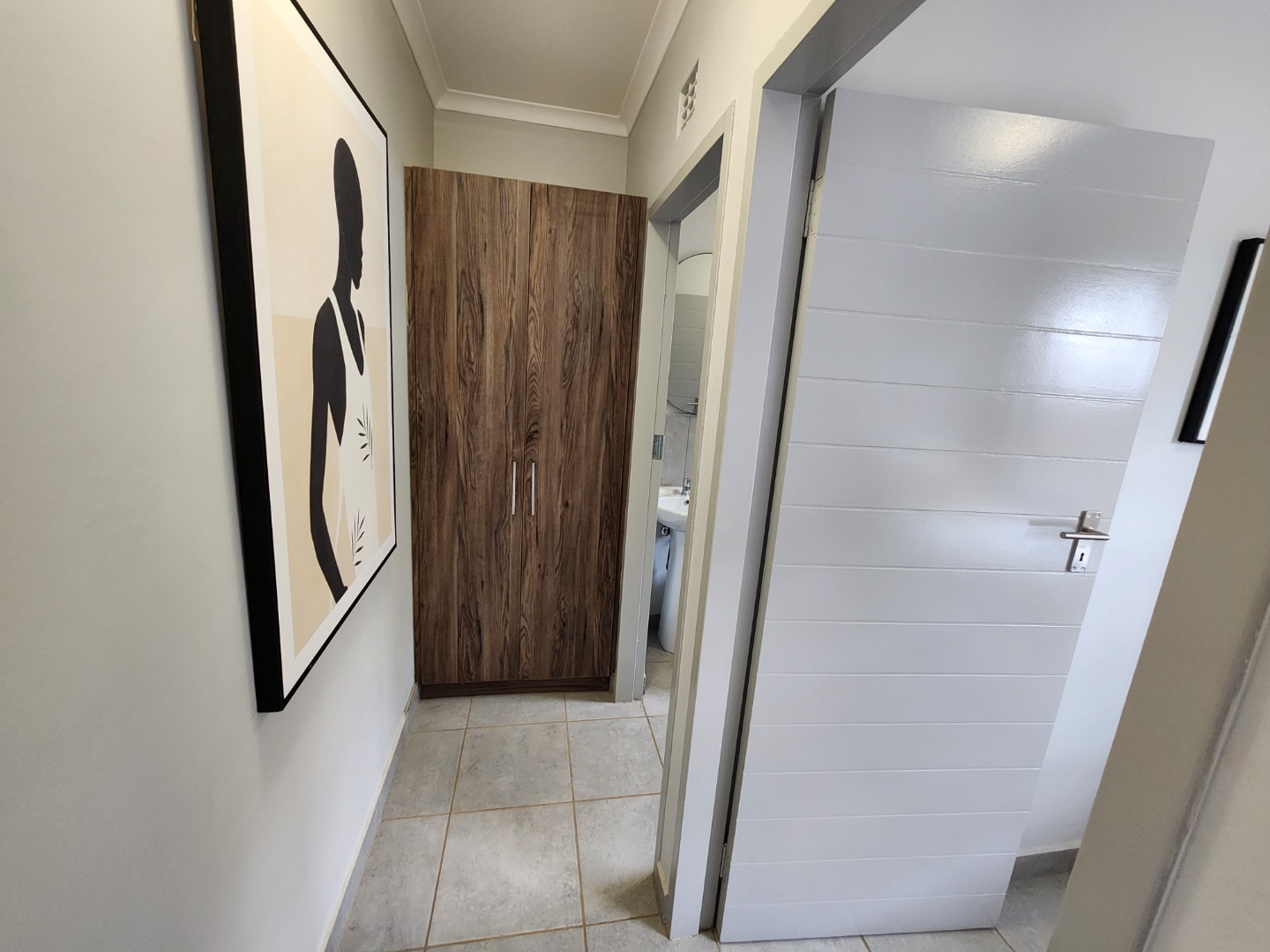 At the heart of the home is a beautiful open-plan kitchen and lounge area, designed to create a welcoming space for everyday living and entertaining. The kitchen is fitted with modern built-in cupboards, offering ample storage and a clean, stylish finish that complements the contemporary design of the home.
