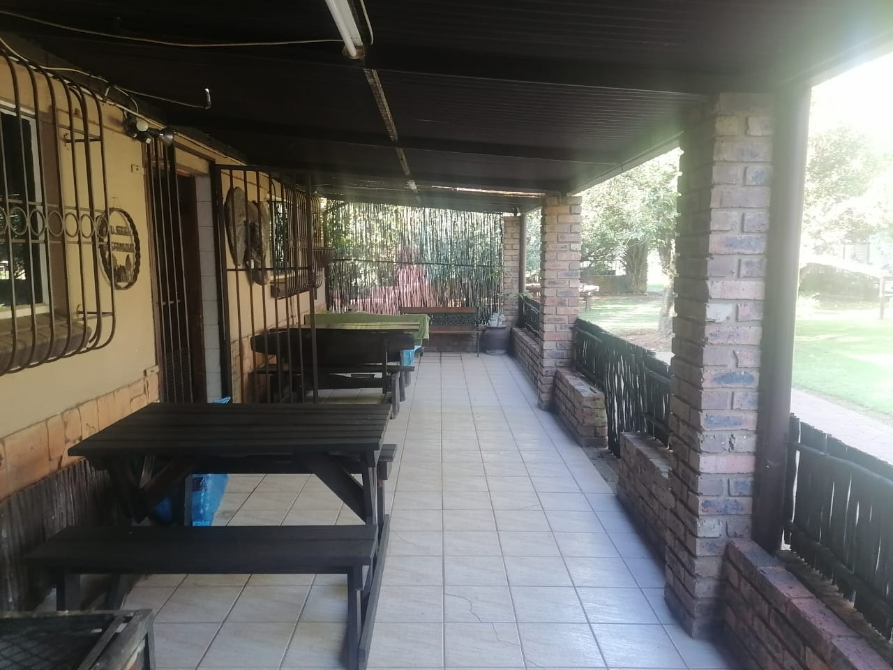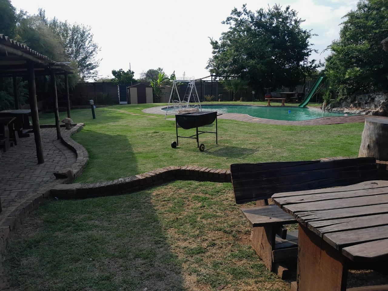 Nestled in Mullerstuine, Vanderbijlpark, this expansive lifestyle farm offers tranquil country living on a 2.50-hectare erf, accessible to city amenities. The property presents distinctive kerb appeal with a charming thatched-roof building and a traditional tiled-roof residence. Mature trees and paved areas define the picturesque setting, while a covered patio and large garden provide ample outdoor space for various activities. Inside, the residence features a lounge, dining room, and a functional kitchen. With six bedrooms and three bathrooms, including a guest toilet, it accommodates a large family or offers guest lodging. Built-in cupboards, tiled flooring, and a fireplace add character, with one room boasting a private balcony overlooking lush greenery. Outdoor living is enhanced by the extensive garden, a thatch-roofed lapa perfect for entertaining, and ample paving. Two garages and eight additional parking spaces ensure convenience. Practical amenities include staff quarters and a separate flatlet for versatile living. Security features like burglar bars on windows provide peace of mind, and a borehole contributes to water self-sufficiency. Key Features: * 6 Bedrooms, 3 Bathrooms * 2.50 Hectare Lifestyle Farm * 2 Garages, 8 Parking Spaces * Thatch-Roofed Lapa & Patio * Staff Quarters & Flatlet * Borehole & Fireplace