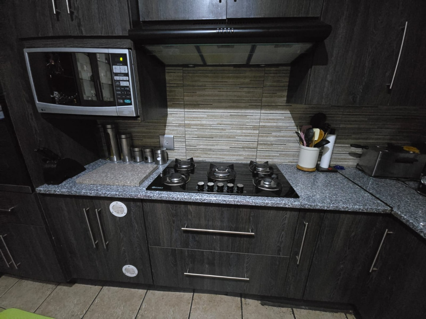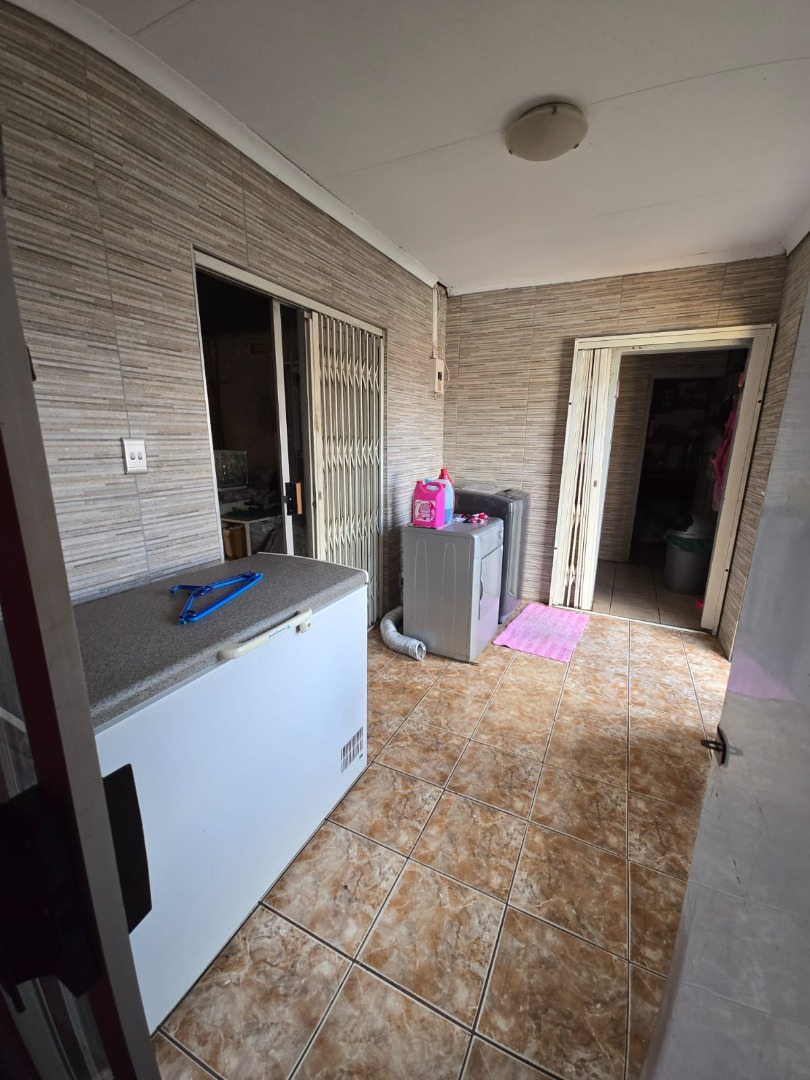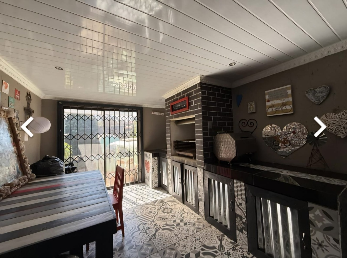 Discover this charming 4-bedroom, 2-bathroom family home situated in the suburban area of Vanderbijlpark CW. The property immediately impresses with its lush garden beds, natural stone paving, and a welcoming covered patio, offering an inviting kerb appeal. Inside, the residence features a modern kitchen equipped with dark wood-look cabinetry, speckled countertops, a gas stovetop, and an integrated microwave, ensuring a practical and stylish culinary experience. The home also includes a dedicated lounge and dining room for comfortable living. Designed for entertaining, this property boasts vibrant and unique entertainment spaces. Enjoy a dedicated bar area with seating, perfect for social gatherings, alongside a spacious communal dining or braai room. This area features a built-in braai, decorative floor tiles, and large sliding doors that open to the outdoors, creating an ideal setting for year-round enjoyment. A separate study provides a quiet space for work or hobbies, and a convenient laundry room adds to the home's functionality. The four well-proportioned bedrooms offer comfortable accommodation, complemented by two bathrooms, one of which is fully tiled with a glass-enclosed shower. Outdoors, the expansive green lawn, mature trees, and a private, shaded patio create a serene environment for relaxation. The property further benefits from a single garage, four additional parking spaces, and water tanks for enhanced sustainability. Security is well-addressed with 24-hour security and burglar bars, providing peace of mind. Vanderbijlpark CW is a well-established suburban neighbourhood, offering a convenient lifestyle and potential for student accommodation. Key Features: * 4 Bedrooms, 2 Bathrooms * Modern Kitchen with Gas Stovetop * Dedicated Bar Area * Built-in Braai Room * Lounge and Dining Room * Study and Laundry Room * Single Garage & 4 Parking Spaces * Lush Garden with Covered Patio * Water Tanks * 24-Hour Security & Burglar Bars