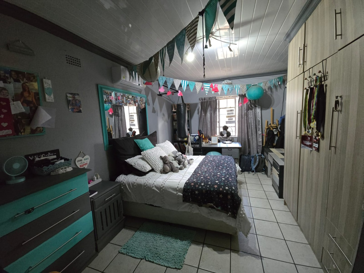 Discover this charming 4-bedroom, 2-bathroom family home situated in the suburban area of Vanderbijlpark CW. The property immediately impresses with its lush garden beds, natural stone paving, and a welcoming covered patio, offering an inviting kerb appeal. Inside, the residence features a modern kitchen equipped with dark wood-look cabinetry, speckled countertops, a gas stovetop, and an integrated microwave, ensuring a practical and stylish culinary experience. The home also includes a dedicated lounge and dining room for comfortable living. Designed for entertaining, this property boasts vibrant and unique entertainment spaces. Enjoy a dedicated bar area with seating, perfect for social gatherings, alongside a spacious communal dining or braai room. This area features a built-in braai, decorative floor tiles, and large sliding doors that open to the outdoors, creating an ideal setting for year-round enjoyment. A separate study provides a quiet space for work or hobbies, and a convenient laundry room adds to the home's functionality. The four well-proportioned bedrooms offer comfortable accommodation, complemented by two bathrooms, one of which is fully tiled with a glass-enclosed shower. Outdoors, the expansive green lawn, mature trees, and a private, shaded patio create a serene environment for relaxation. The property further benefits from a single garage, four additional parking spaces, and water tanks for enhanced sustainability. Security is well-addressed with 24-hour security and burglar bars, providing peace of mind. Vanderbijlpark CW is a well-established suburban neighbourhood, offering a convenient lifestyle and potential for student accommodation. Key Features: * 4 Bedrooms, 2 Bathrooms * Modern Kitchen with Gas Stovetop * Dedicated Bar Area * Built-in Braai Room * Lounge and Dining Room * Study and Laundry Room * Single Garage & 4 Parking Spaces * Lush Garden with Covered Patio * Water Tanks * 24-Hour Security & Burglar Bars