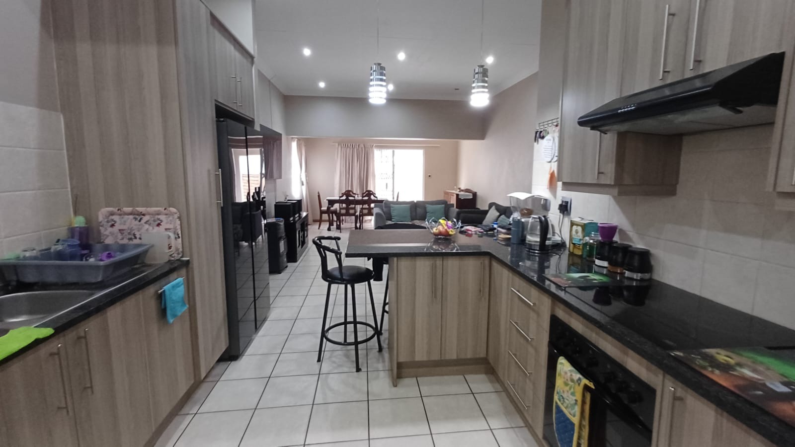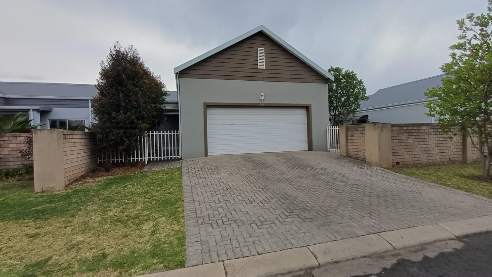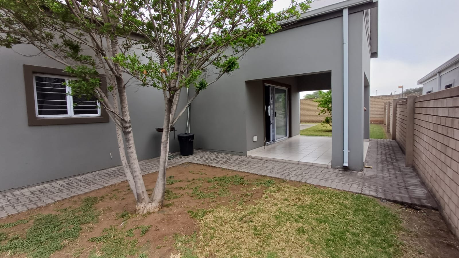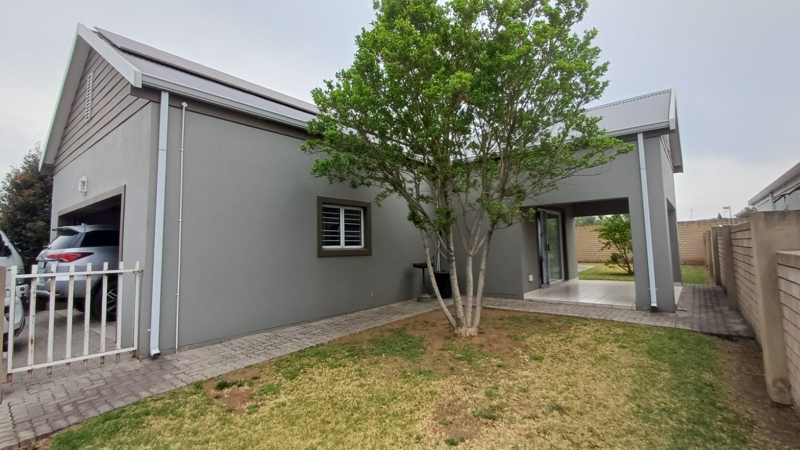 Discover this modern 3-bedroom, 2-bathroom home situated in a secure estate in Vanderbijlpark CE. The property features a contemporary grey and brown exterior, complemented by a paved driveway leading to a double garage. Inside, an inviting open-plan layout seamlessly connects the modern kitchen, dining area, and lounge, creating a spacious and cohesive living environment. Tiled flooring throughout ensures easy maintenance, while sliding doors offer access to the outdoor patio.