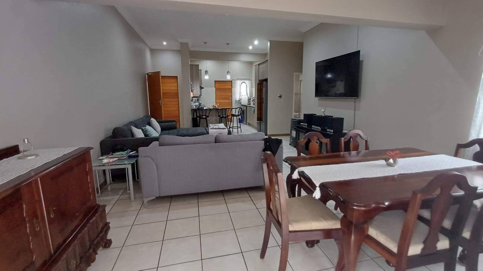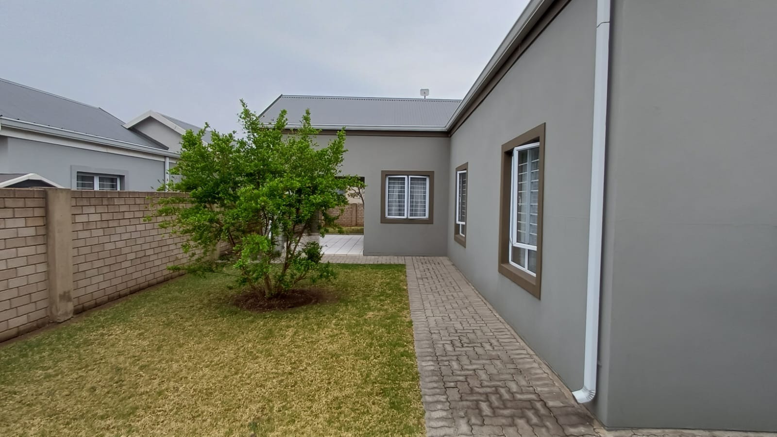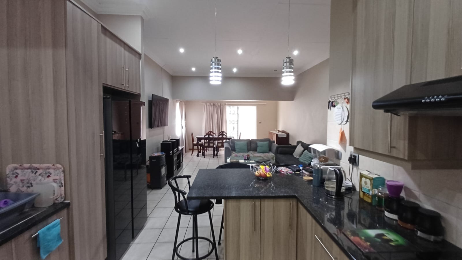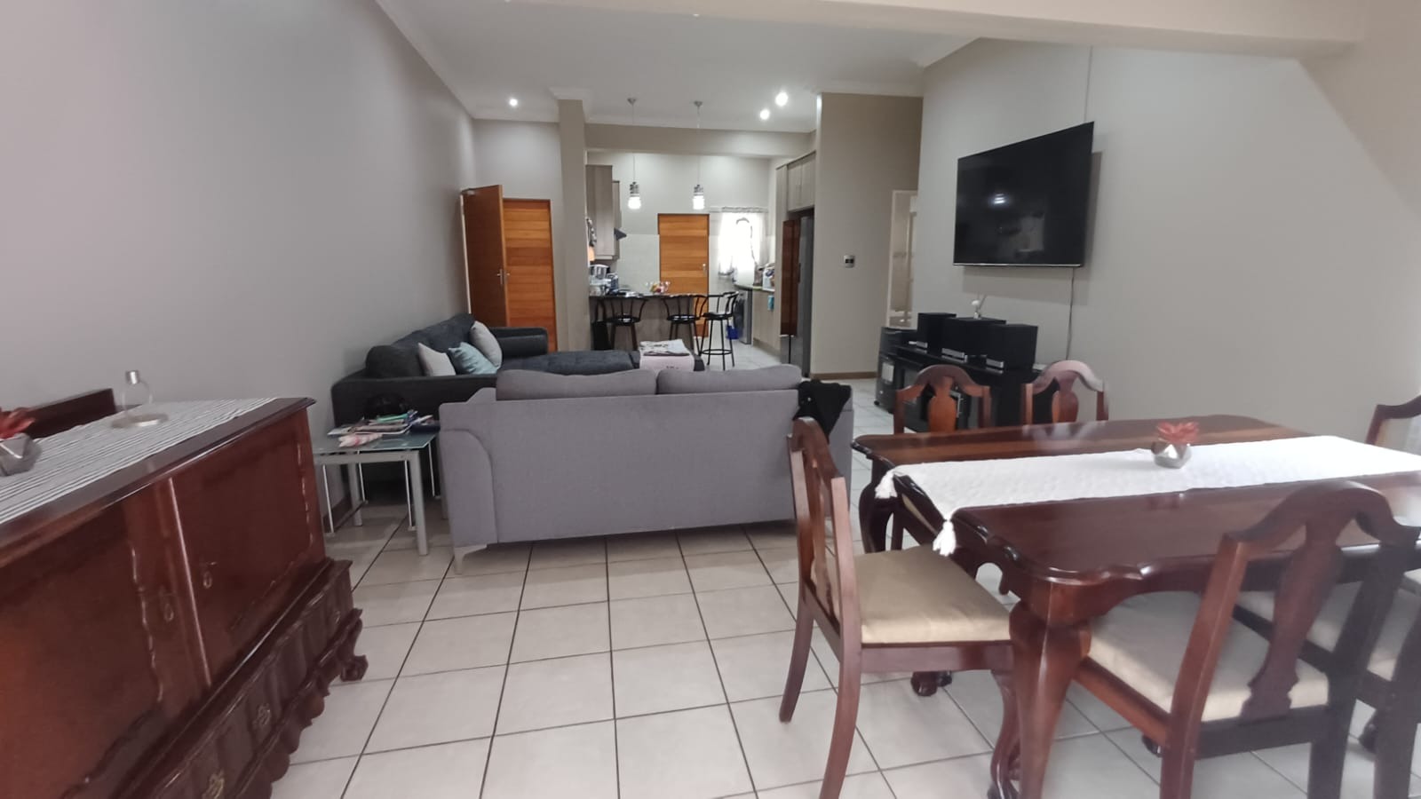 Discover this modern 3-bedroom, 2-bathroom home situated in a secure estate in Vanderbijlpark CE. The property features a contemporary grey and brown exterior, complemented by a paved driveway leading to a double garage. Inside, an inviting open-plan layout seamlessly connects the modern kitchen, dining area, and lounge, creating a spacious and cohesive living environment. Tiled flooring throughout ensures easy maintenance, while sliding doors offer access to the outdoor patio.