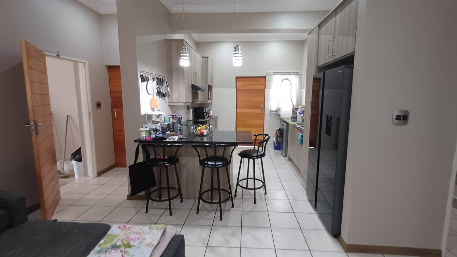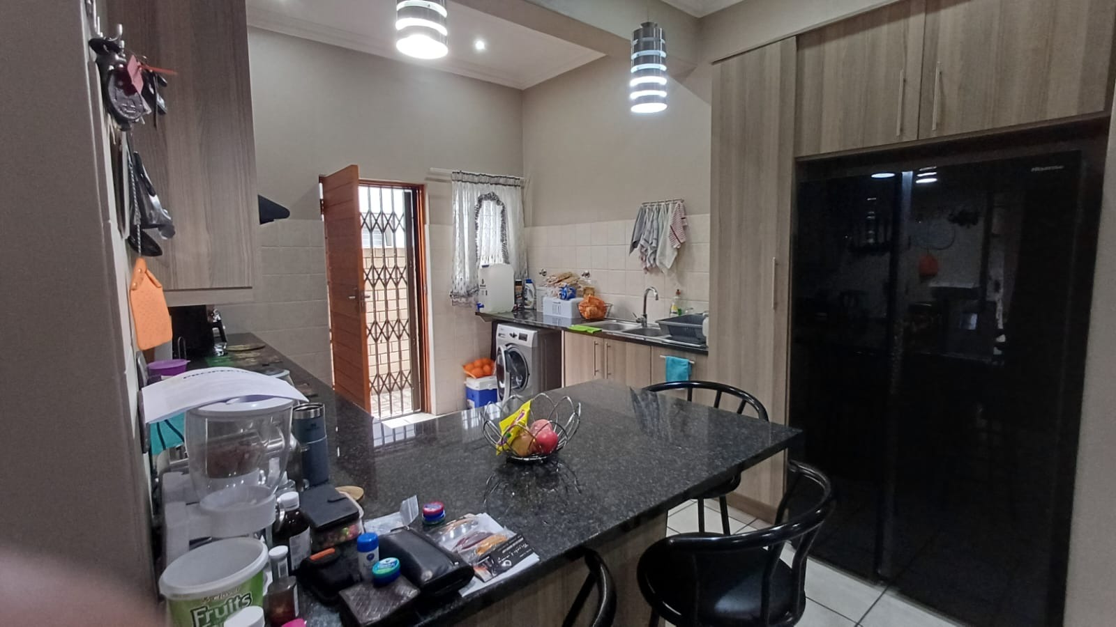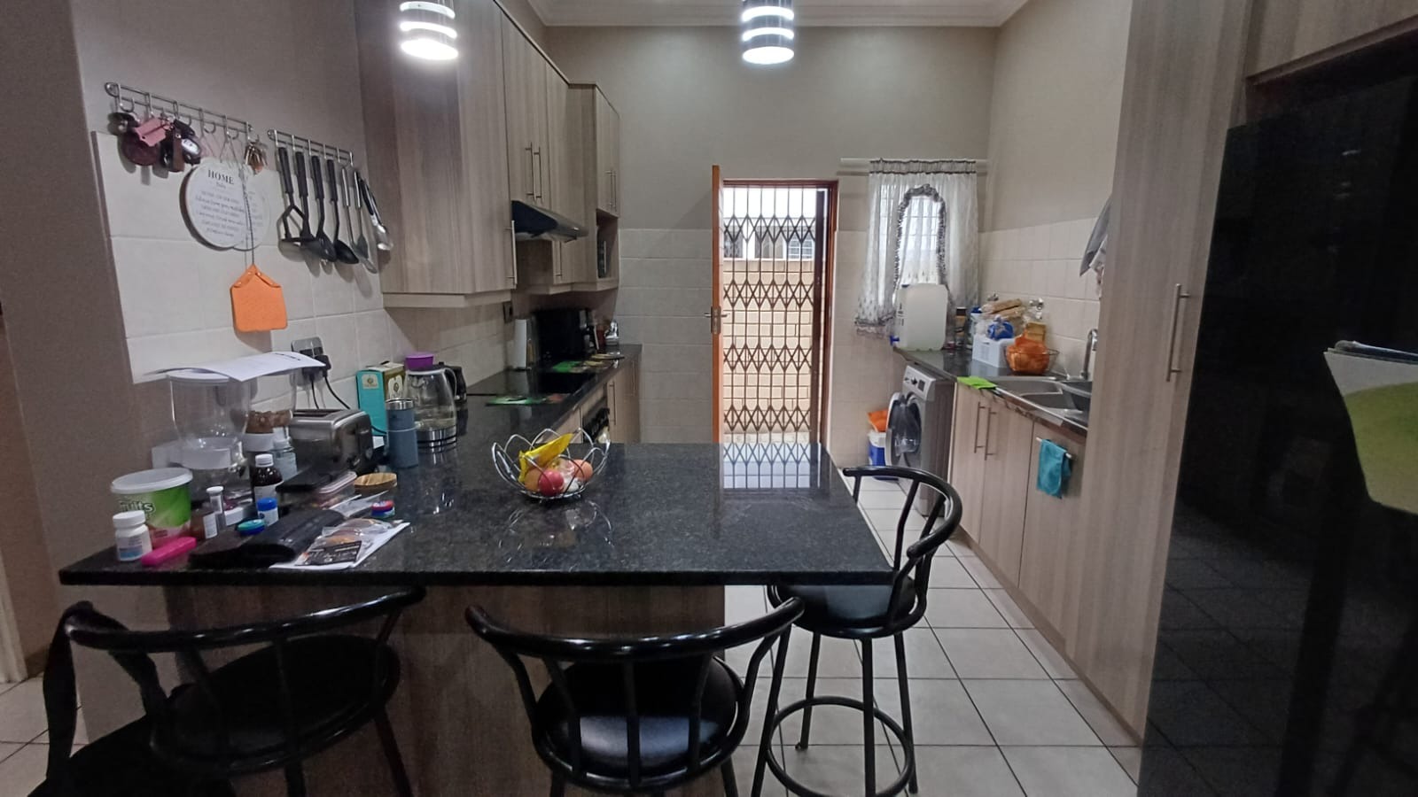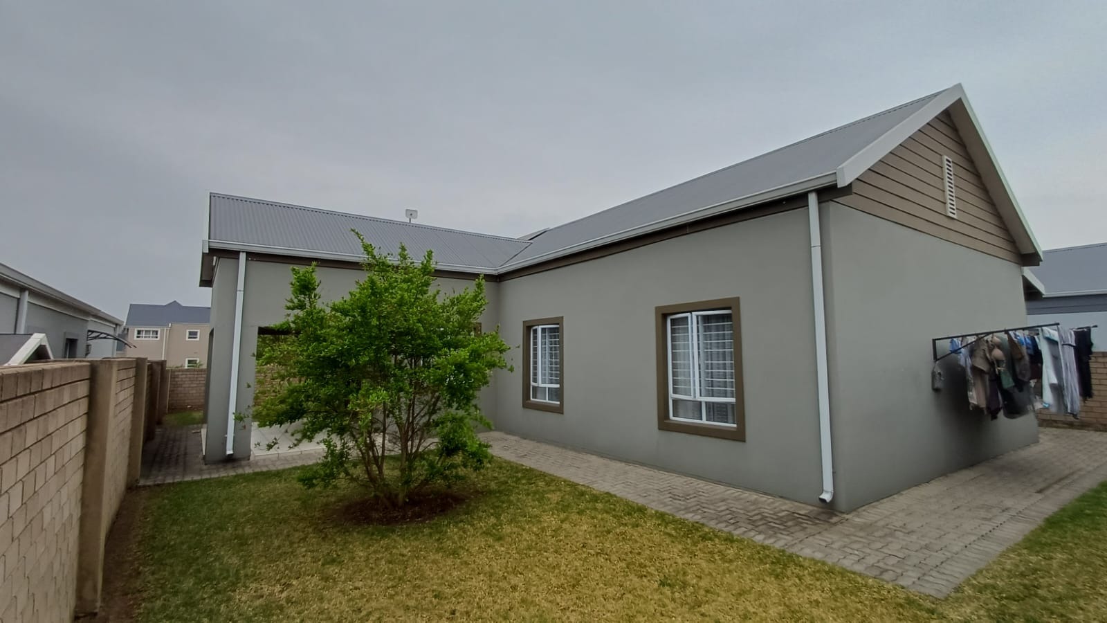 Discover this modern 3-bedroom, 2-bathroom home situated in a secure estate in Vanderbijlpark CE. The property features a contemporary grey and brown exterior, complemented by a paved driveway leading to a double garage. Inside, an inviting open-plan layout seamlessly connects the modern kitchen, dining area, and lounge, creating a spacious and cohesive living environment. Tiled flooring throughout ensures easy maintenance, while sliding doors offer access to the outdoor patio.