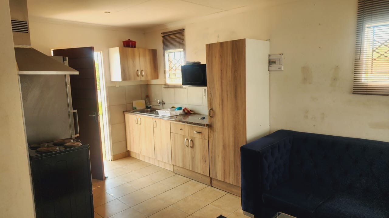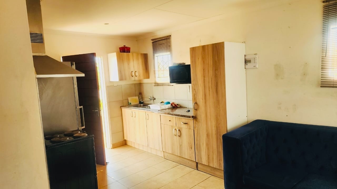 This modern-style house in Savanna City offers a fresh and inviting exterior, featuring a recently painted green and cream facade complemented by a sturdy brick foundation. The property boasts modern window styles and a security gate on the main entrance, enhancing both aesthetic appeal and peace of mind. A partial grass lawn adds a touch of greenery to the front, with the generous 344 sqm erf providing ample space for future landscaping and outdoor enhancements. Step inside to discover a compact, open-plan living and kitchen area designed for practical living. The kitchen is equipped with modern light wood cabinetry, a functional sink, stove, and a range hood, catering to everyday culinary needs. Tiled flooring extends throughout the space, ensuring easy maintenance. The living area is comfortably appointed with a blue sofa, creating an inviting atmosphere for relaxation and socialising. The home comprises two well-proportioned bedrooms and a single bathroom, offering comfortable accommodation for residents. The layout is designed to maximise space and functionality, making it an ideal choice for individuals or small families seeking a manageable and efficient living environment. Outdoor amenities include three dedicated parking bays, providing convenient off-street parking. The property's current state, with mostly bare ground, presents a blank canvas for new owners to personalise and create their ideal garden or outdoor entertainment area. Security features such as the main entrance security gate and window bars contribute to a secure living experience. Located in Savanna City, Walkerville, this property is situated within a developing residential area. The suburb offers a growing community environment, making it an attractive location for those looking to establish roots in a dynamic and evolving neighbourhood. Key Features: * 2 Bedrooms, 1 Bathroom * Open-plan living and kitchen area * Modern kitchen cabinetry with stove and range hood * Tiled flooring throughout * Security gate on main entrance * 344 sqm erf * 3 Parking bays * Freshly painted exterior