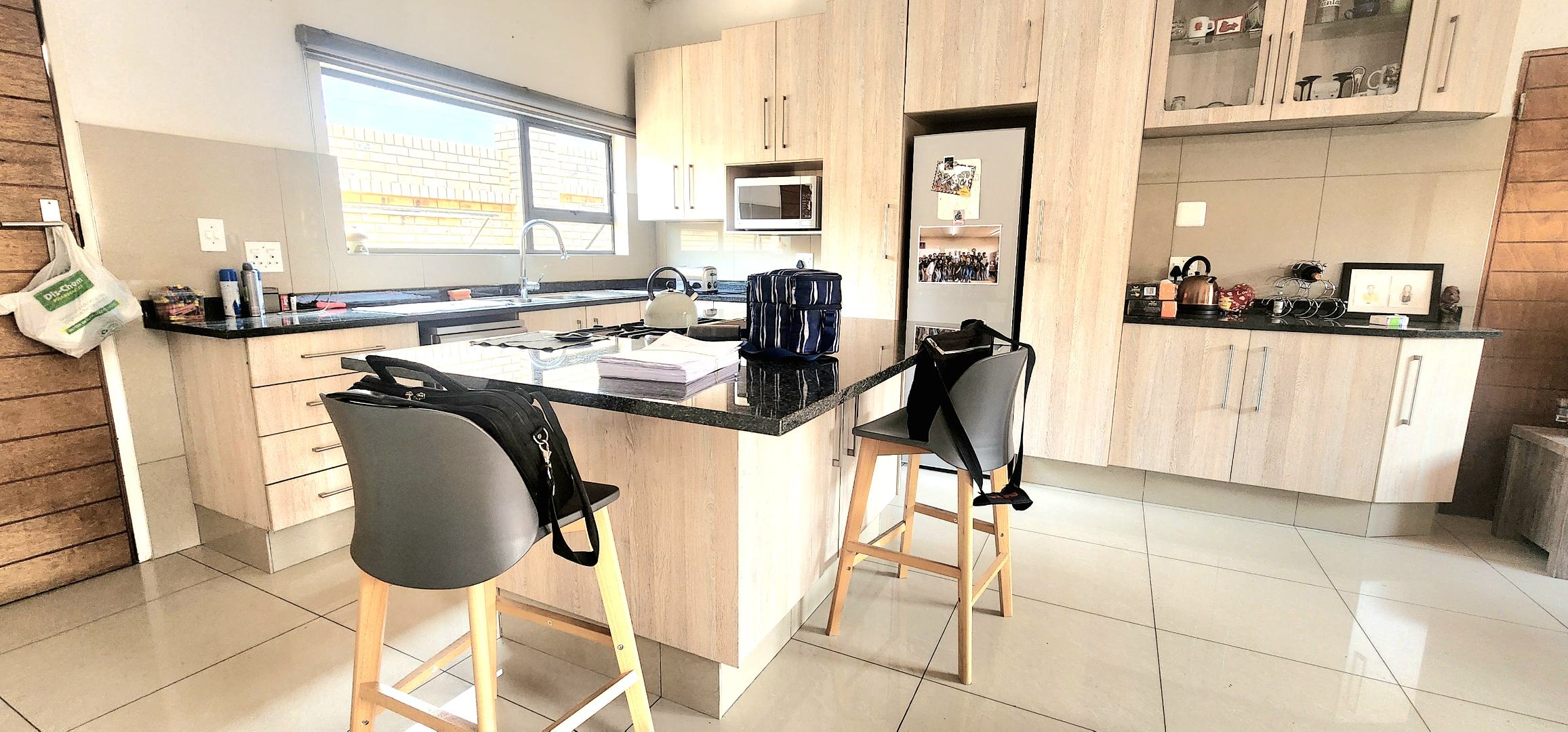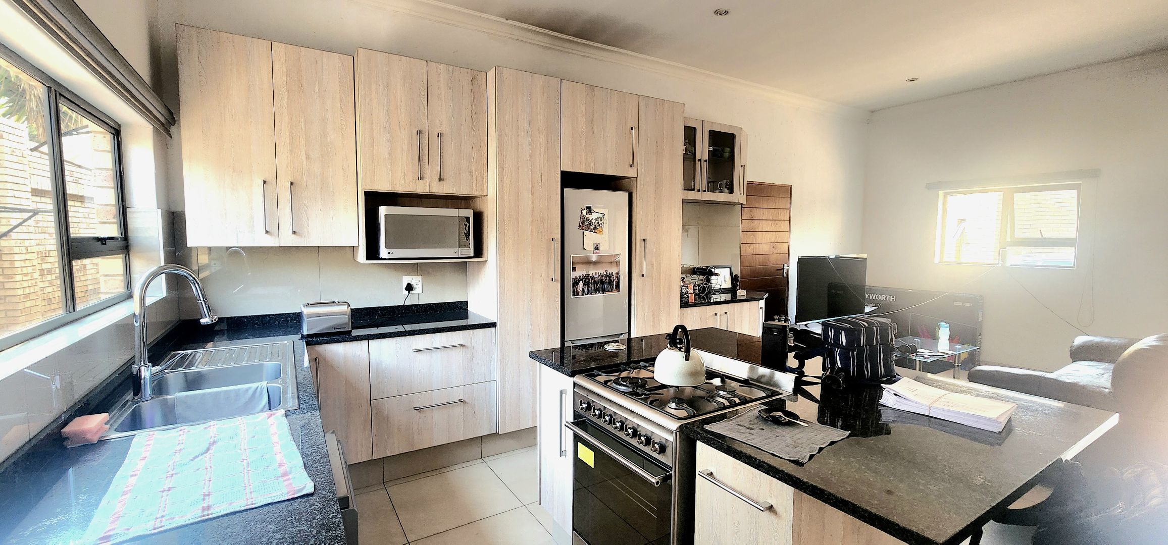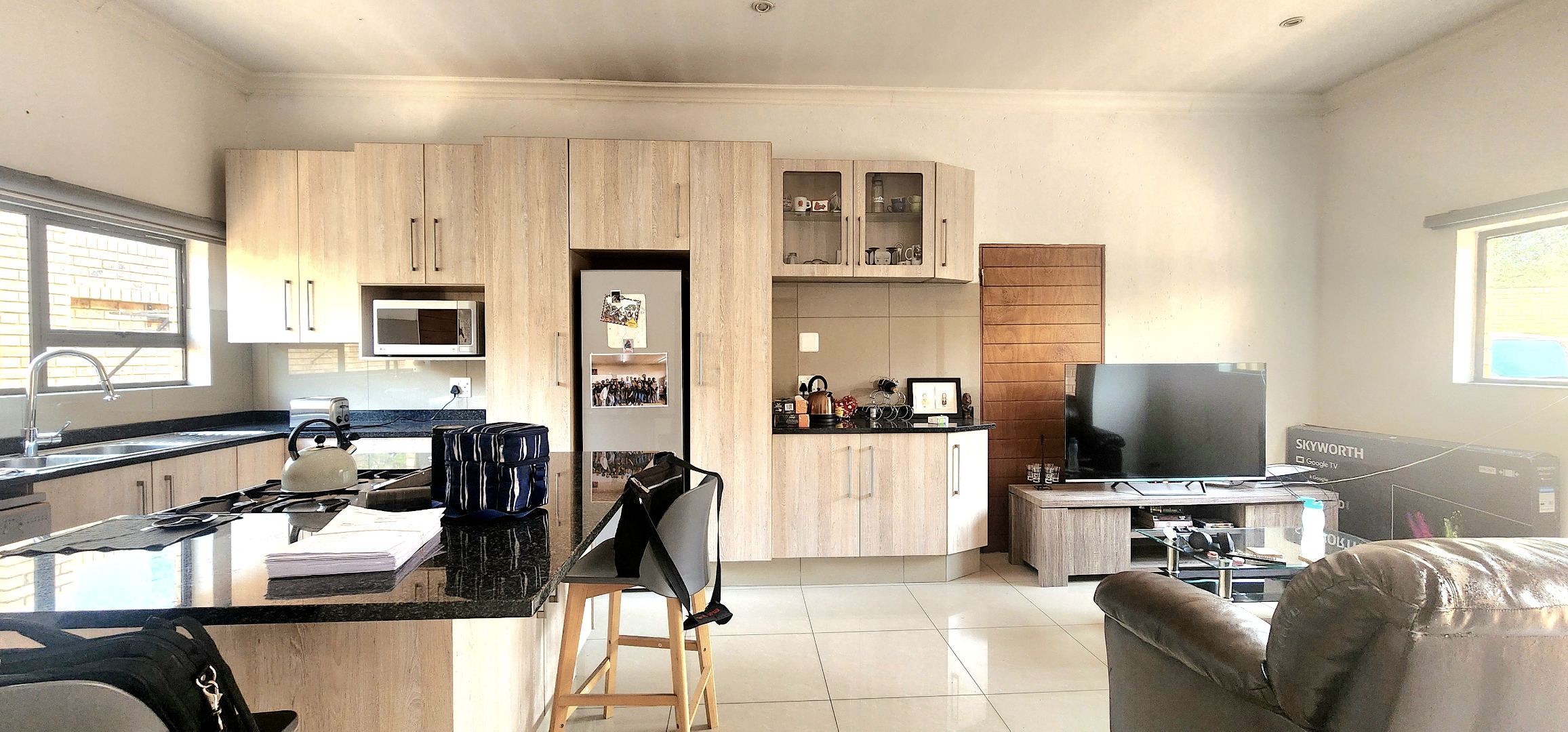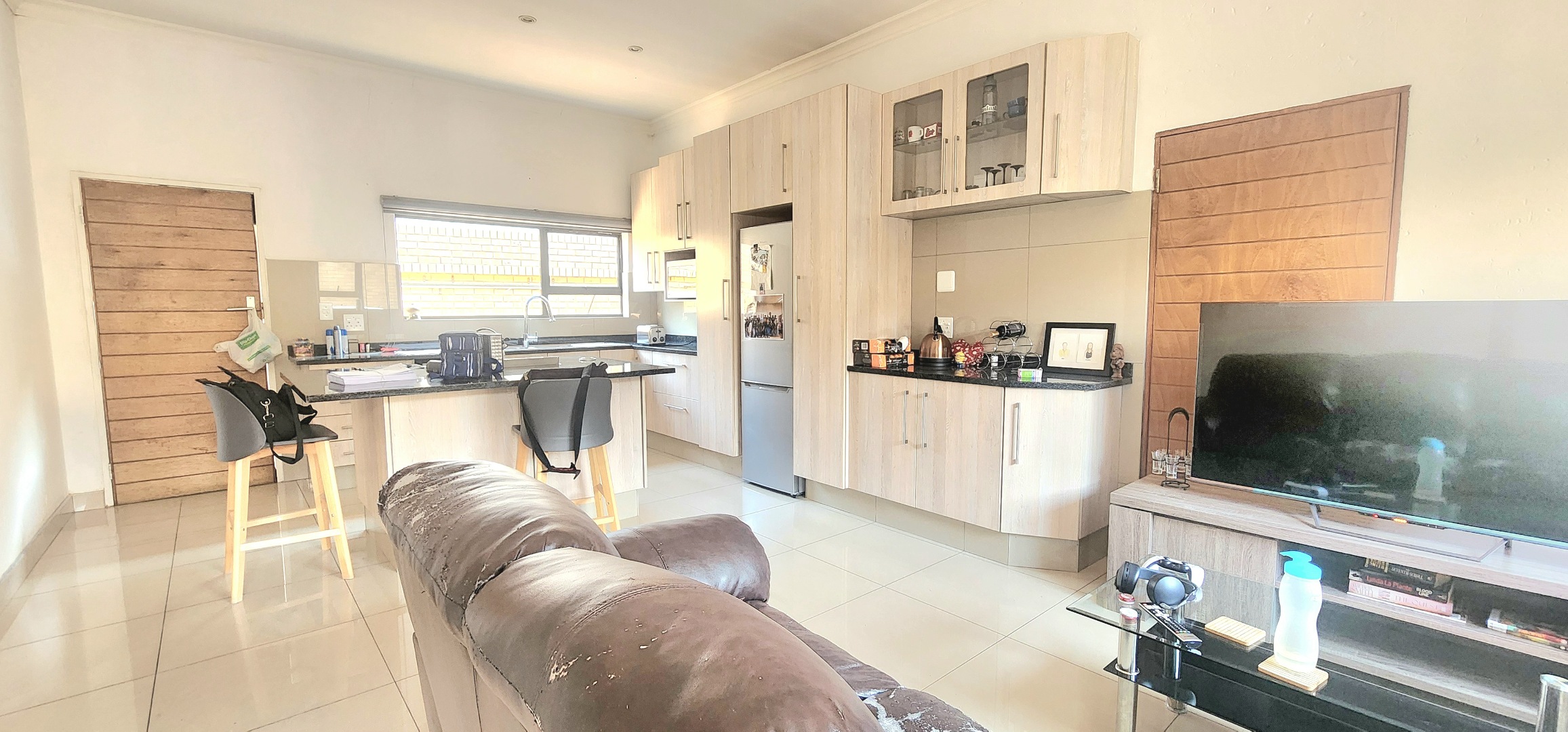 This contemporary and very spacious 1-bedroom, 1-bathroom unit offers an ideal residential rental opportunity within a secure estate in Alberante, Alberton. Designed for modern living, the property features an inviting open-plan layout seamlessly connecting the kitchen and lounge area. The kitchen is a highlight, boasting stylish light-toned cabinetry, dark granite-look countertops, and a practical island complete with an integrated gas stove. Abundant natural light fills the space through multiple windows, complemented by easy-to-maintain tiled flooring throughout. The lounge area provides a comfortable space, perfect for relaxation or as a family TV room.
