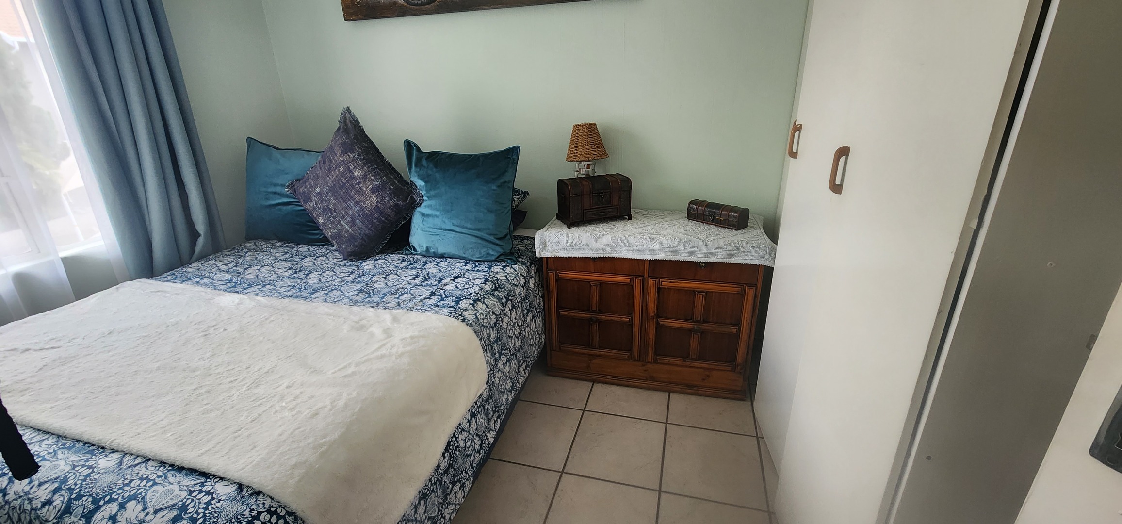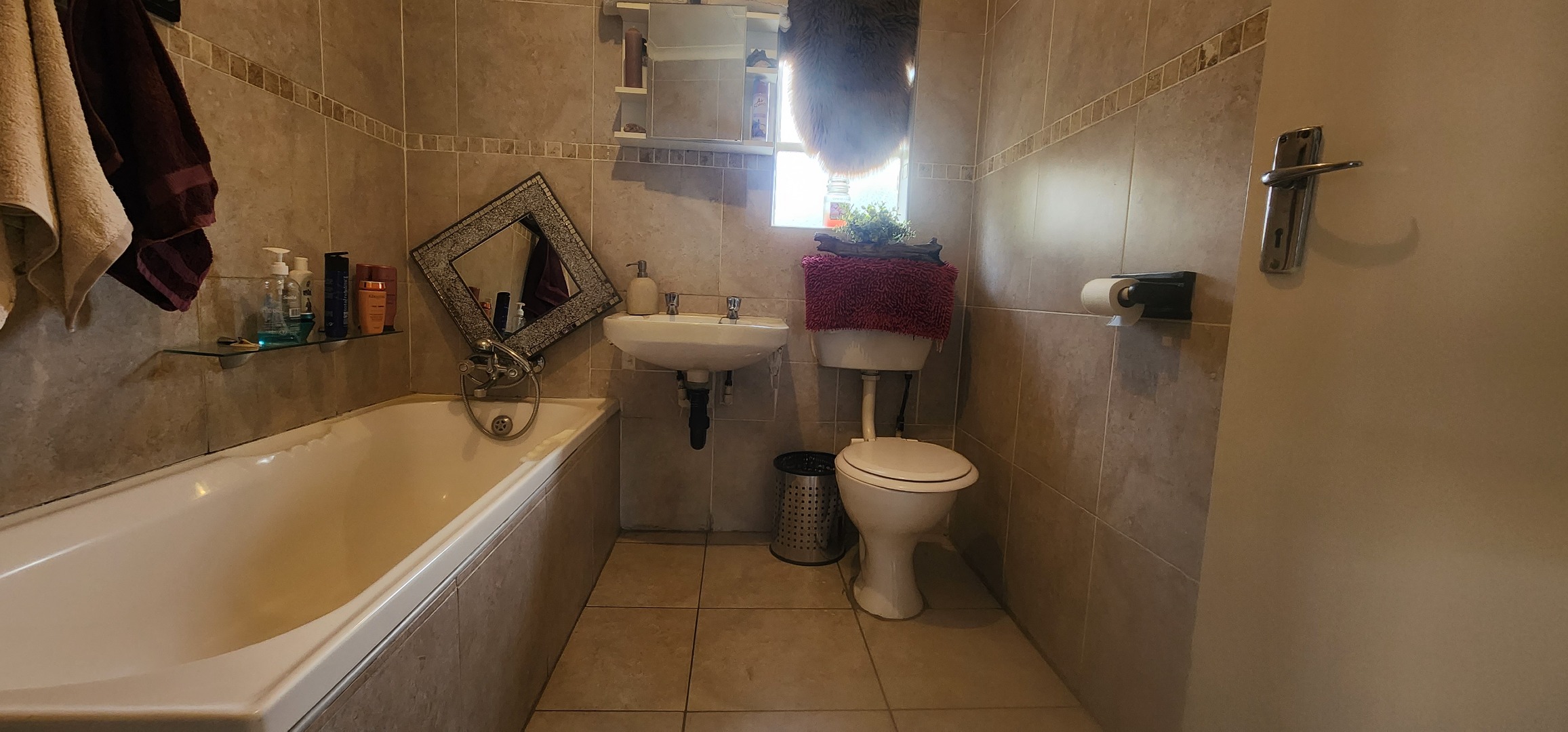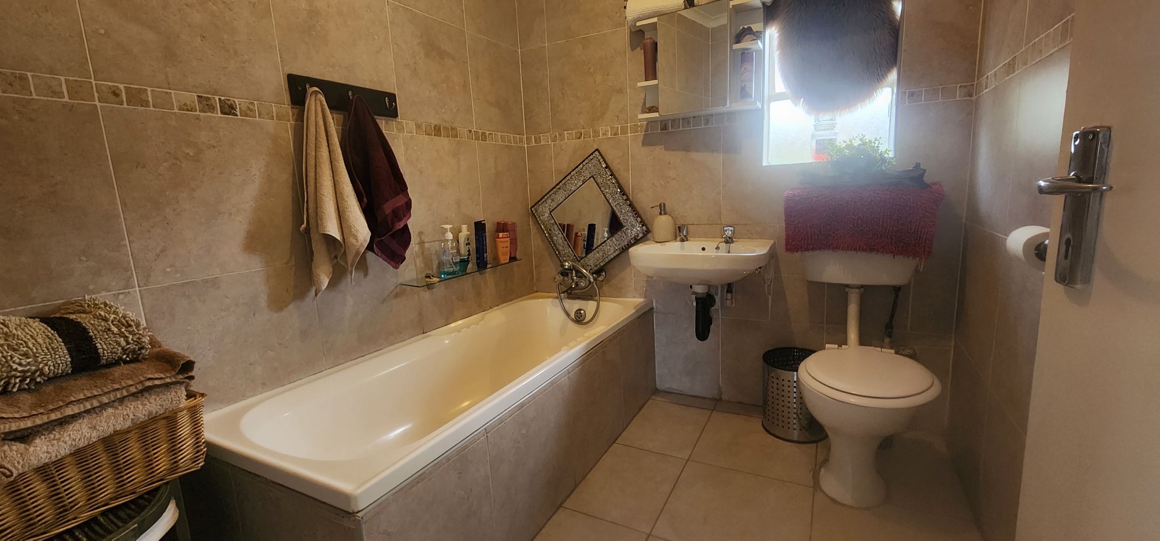 Both bedrooms are designed for comfort, featuring tiled floors and ample natural light. Built-in wardrobes provide essential storage, helping to keep living spaces organised. The single bathroom is fully tiled and includes a bathtub, basin, and toilet, catering to all your essential needs.