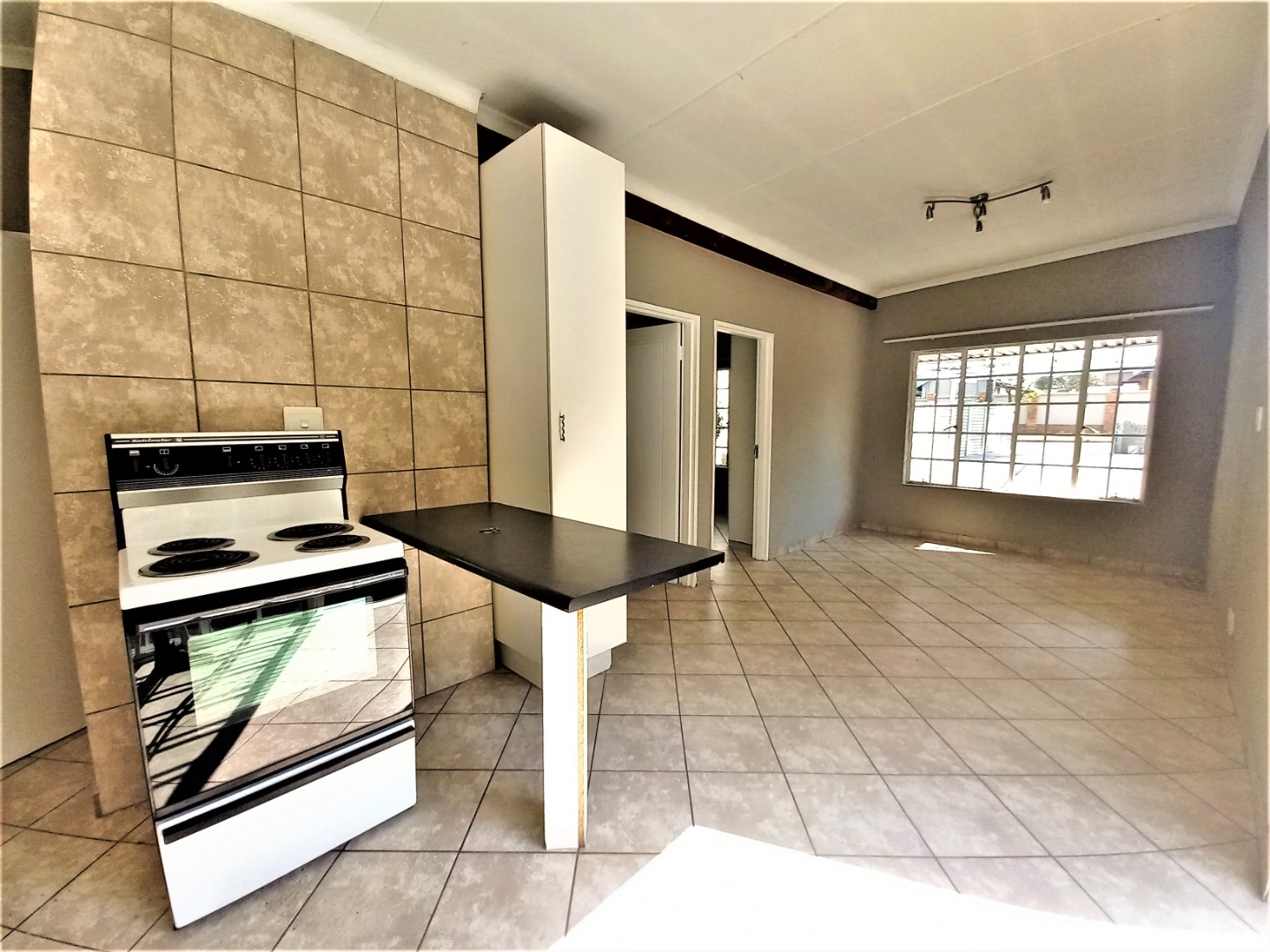 Discover comfortable and secure living in this inviting 2-bedroom, 1-bathroom rental property located within a sought-after Alberante security estate in Randhart, Alberton. Designed for practical living, the residence features an open-plan layout seamlessly connecting the lounge and kitchen areas, all adorned with easy-to-maintain tiled flooring. The functional kitchen boasts ample white cabinetry, a freestanding stove, and a convenient breakfast bar, perfect for casual dining or meal preparation. Natural light floods the living spaces through large windows, creating a bright and airy atmosphere.