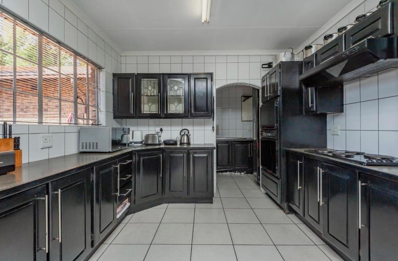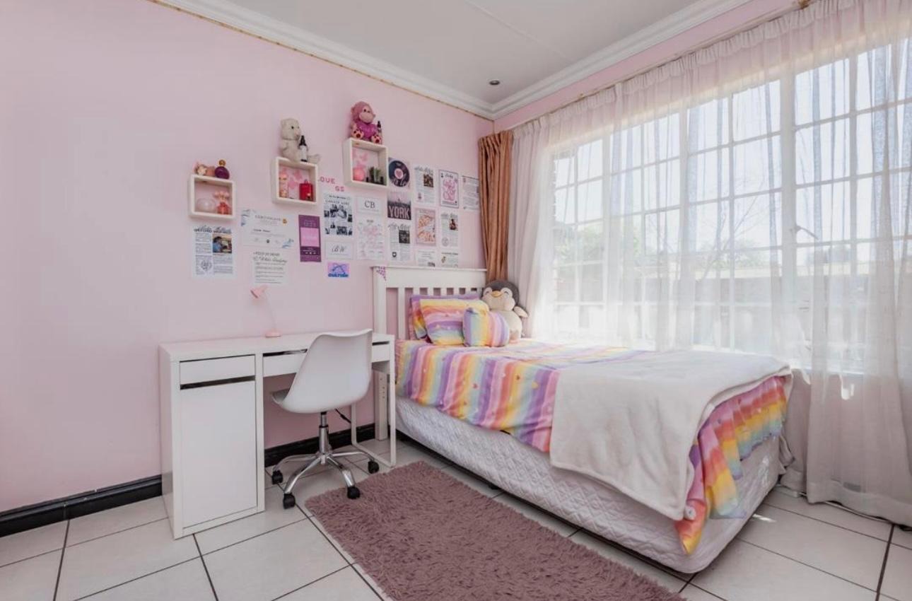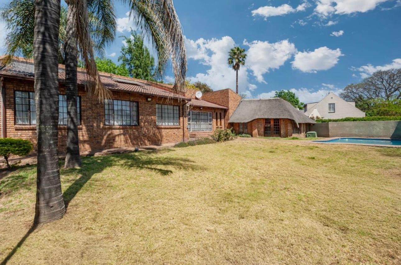 Designed for an elevated lifestyle, this home is perfectly suited for families or professionals seeking a blend of comfort and entertainment. The expansive outdoor area features a large swimming pool, ideal for leisure and recreation. A distinctive thatched lapa, complete with a built-in jacuzzi and a bar, creates an inviting space for hosting guests or enjoying private moments. The property further benefits from a dedicated braai room and a generous garden adorned with mature palm trees, offering a serene environment. Pets are permitted, making this an ideal home for animal lovers.