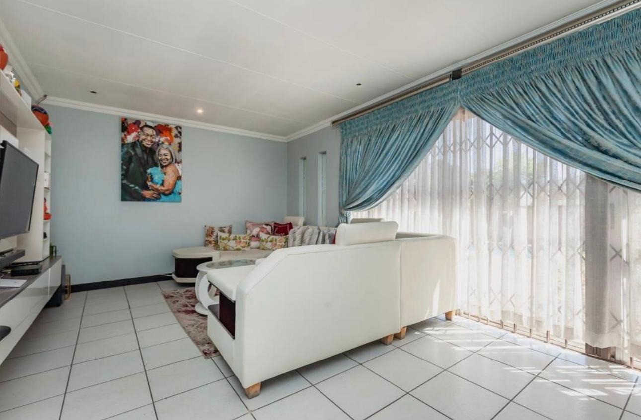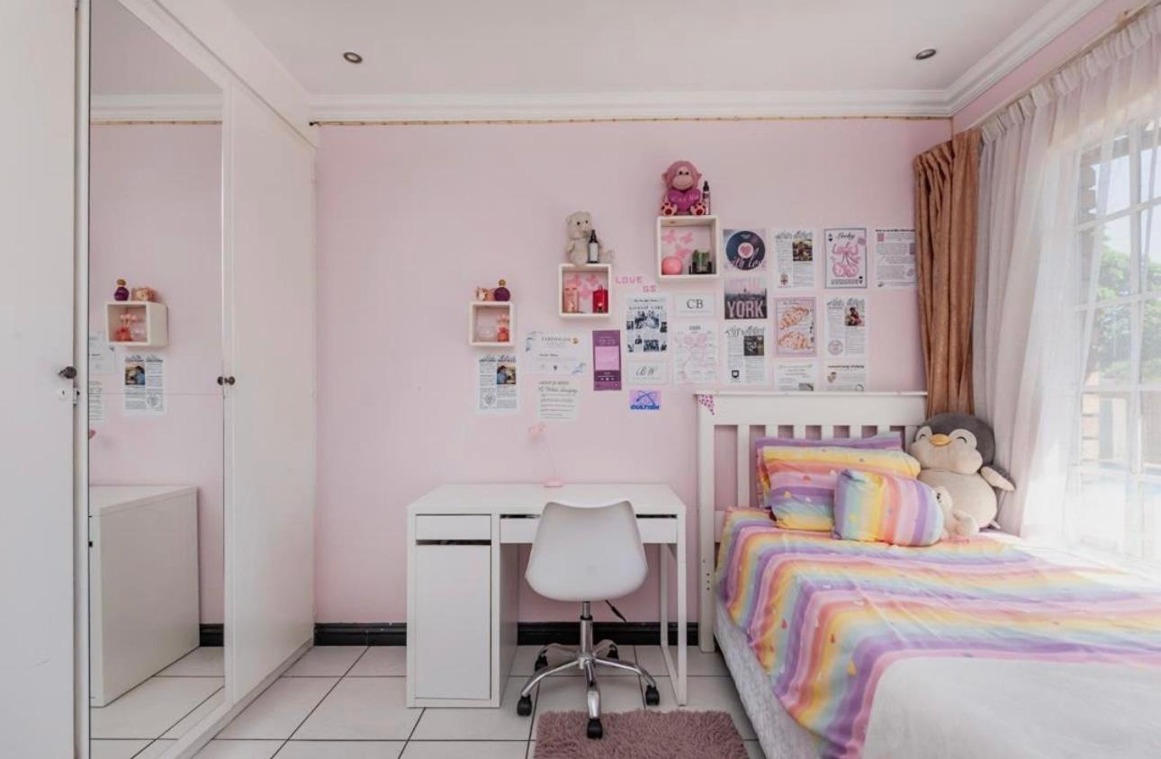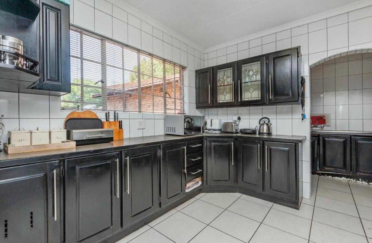 Designed for an elevated lifestyle, this home is perfectly suited for families or professionals seeking a blend of comfort and entertainment. The expansive outdoor area features a large swimming pool, ideal for leisure and recreation. A distinctive thatched lapa, complete with a built-in jacuzzi and a bar, creates an inviting space for hosting guests or enjoying private moments. The property further benefits from a dedicated braai room and a generous garden adorned with mature palm trees, offering a serene environment. Pets are permitted, making this an ideal home for animal lovers.