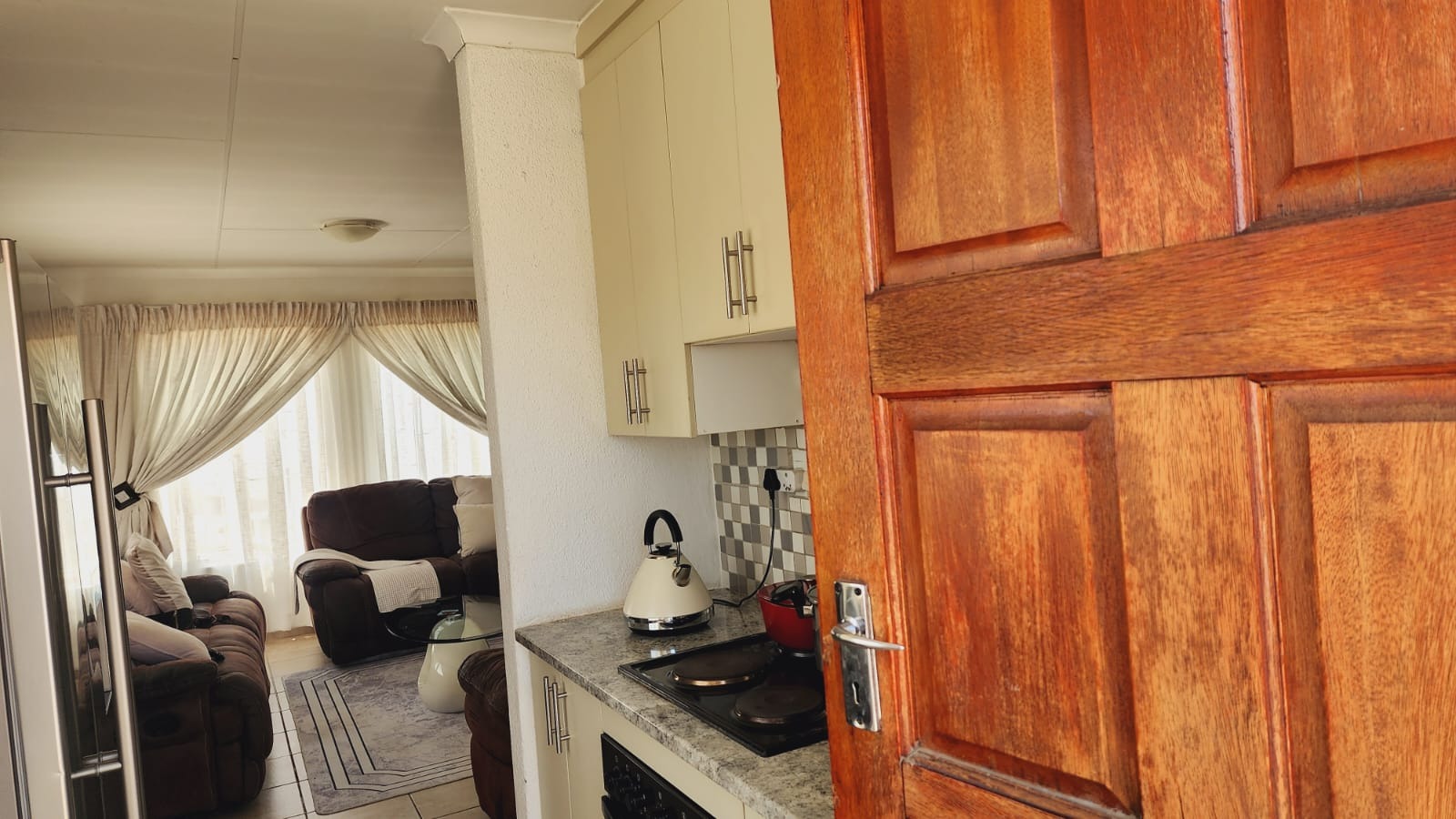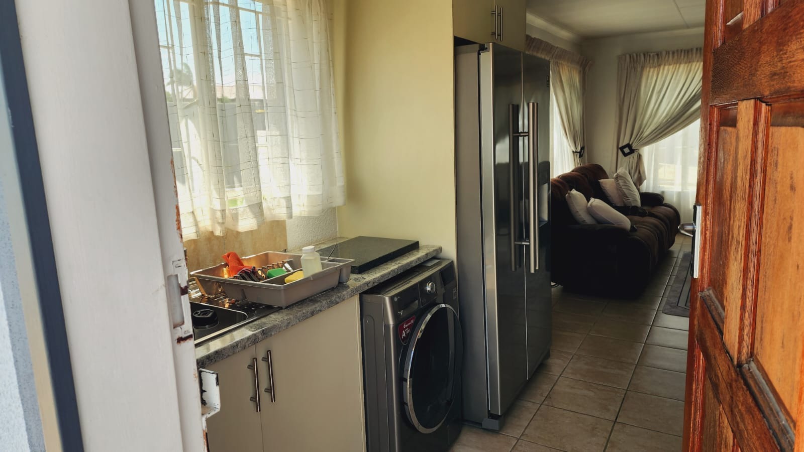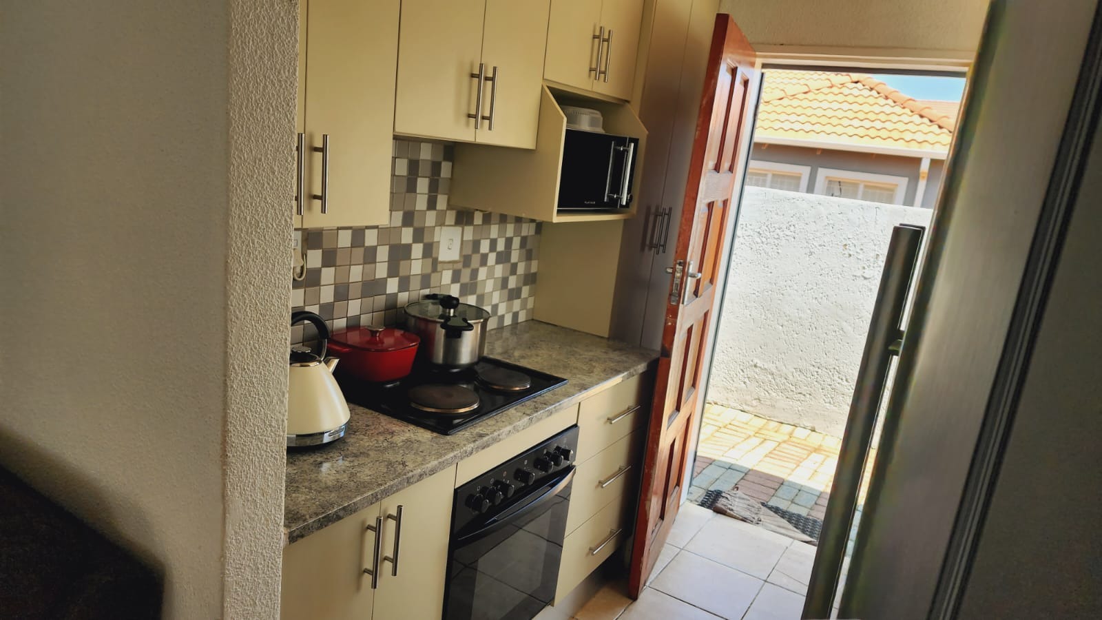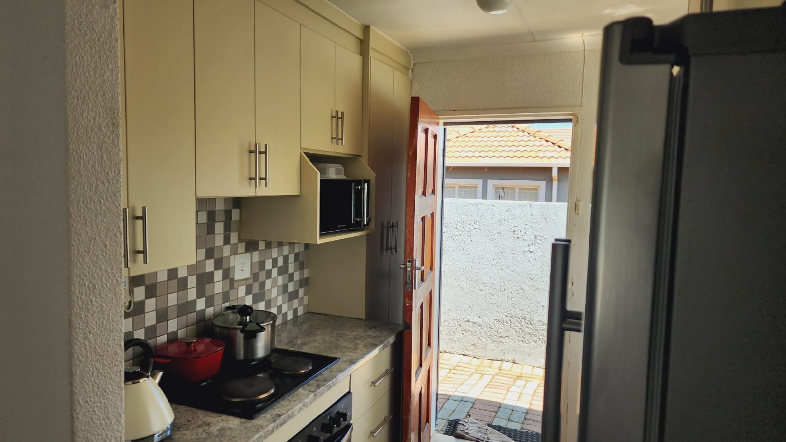 This inviting residential rental property in Alveda, Johannesburg, offers comfortable living with its well-designed layout. The home features three spacious bedrooms and two bathrooms, providing ample accommodation for a family or professionals. The modern kitchen is a highlight, boasting contemporary cream-colored cabinetry, granite-look countertops, a built-in electric oven, and an electric hob. A stylish checkerboard tiled backsplash adds a touch of elegance, and direct outdoor access enhances convenience. The kitchen seamlessly flows into a comfortable lounge area, creating an open-plan feel ideal for daily living and entertaining. The property presents a clean and modern exterior facade with light-colored walls and contemporary reflective strip windows. Parking is abundant, featuring a spacious double garage with attractive wooden-style doors, a paved driveway, and additional open parking spaces, totaling four available spots. A visible carport further enhances covered parking options. The well-maintained exterior includes a tiled roof and a neat, compact lawn area, contributing to its appealing kerb appeal. A separate outbuilding on the property offers versatile additional space. Ideal for those seeking a secure and convenient lifestyle, this rental home is equipped with essential security features, including security gates and burglar bars on windows, as clearly visible in the property's imagery. The paved entry and walkways ensure easy access, while the 500 sqm erf size provides a manageable outdoor space. This home is perfectly suited for families or individuals looking for a comfortable and secure residence within a vibrant community. This well-established suburb in Johannesburg offers residents a convenient location with access to local amenities and transport routes. Its suburban setting provides a peaceful environment while remaining connected to the broader city. Key Features: * 3 Bedrooms, 2 Bathrooms * Modern Kitchen with Built-in Oven & Hob * Spacious Double Garage * Total 4 Parking Spaces (including carport) * Paved Driveway & Walkways * Security Gates & Burglar Bars * Separate Outbuilding * 500 sqm Erf Size