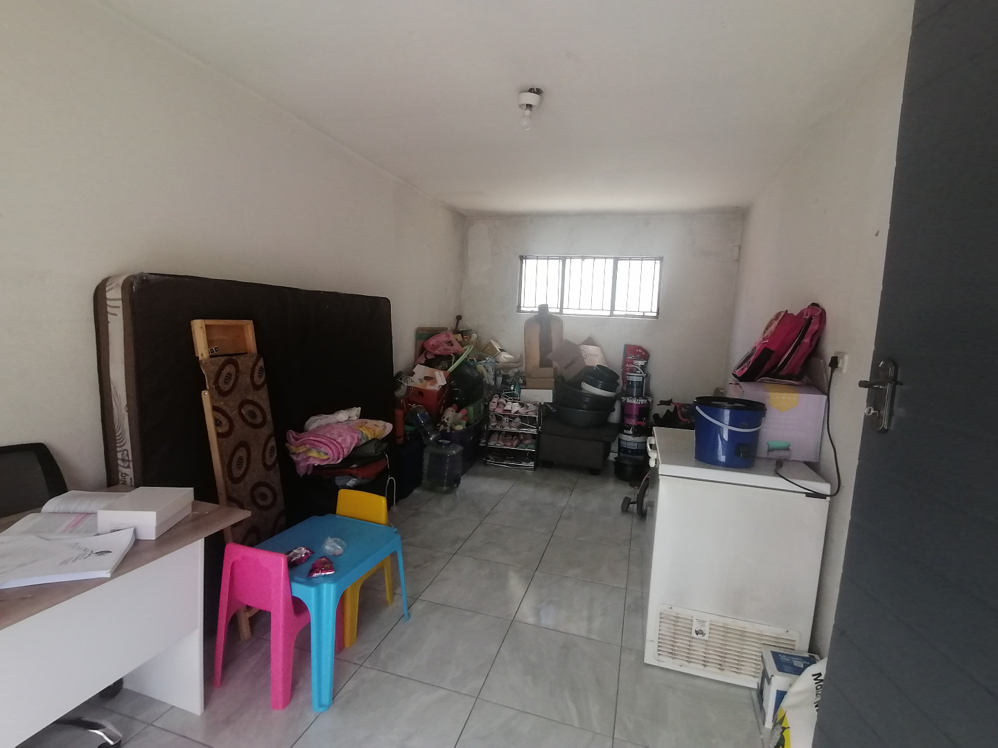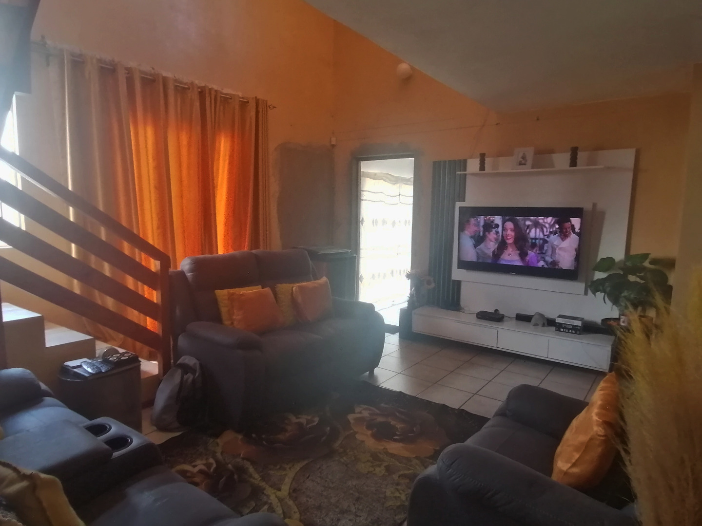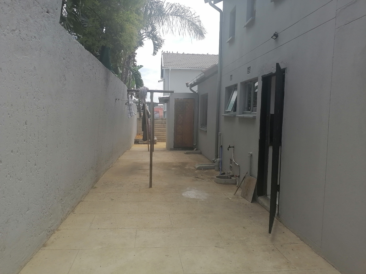 Exterior features include an attached single two car lock up garage alongside five additional open parking spaces, providing ample secure parking for residents and guests. The paved driveway and yard contribute to a low-maintenance outdoor environment, while boundary walls ensure privacy and definition. For enhanced peace of mind, the home is fitted with security gates and burglar bars.