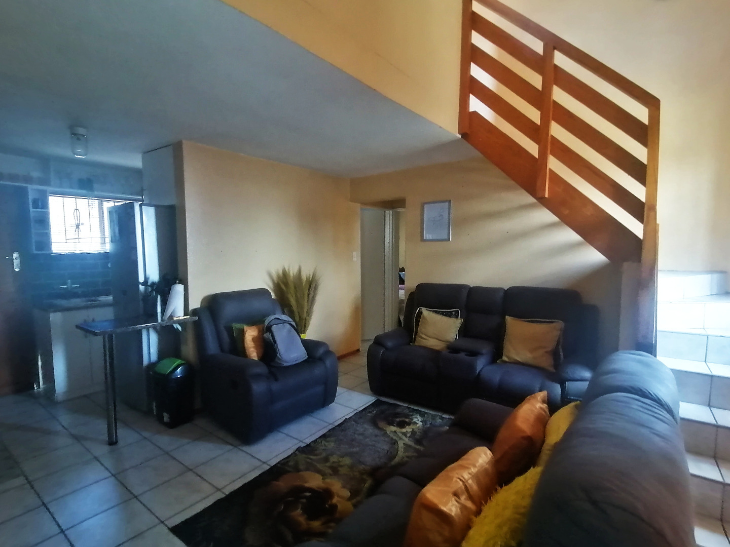 Exterior features include an attached single two car lock up garage alongside five additional open parking spaces, providing ample secure parking for residents and guests. The paved driveway and yard contribute to a low-maintenance outdoor environment, while boundary walls ensure privacy and definition. For enhanced peace of mind, the home is fitted with security gates and burglar bars.