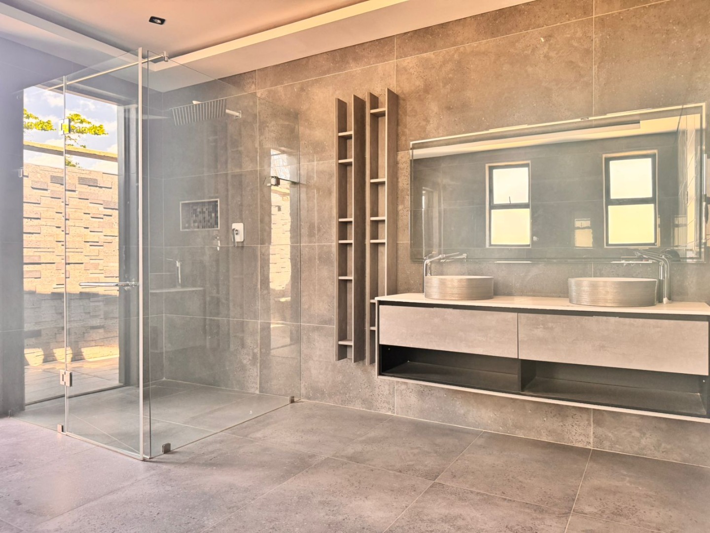 Discover this modern, multi-story rental home in Morningside, Sandton, offering a generous 432 sqm of sophisticated living space. The residence features four spacious bedrooms, each with an en-suite bathroom, plus an additional guest toilet.