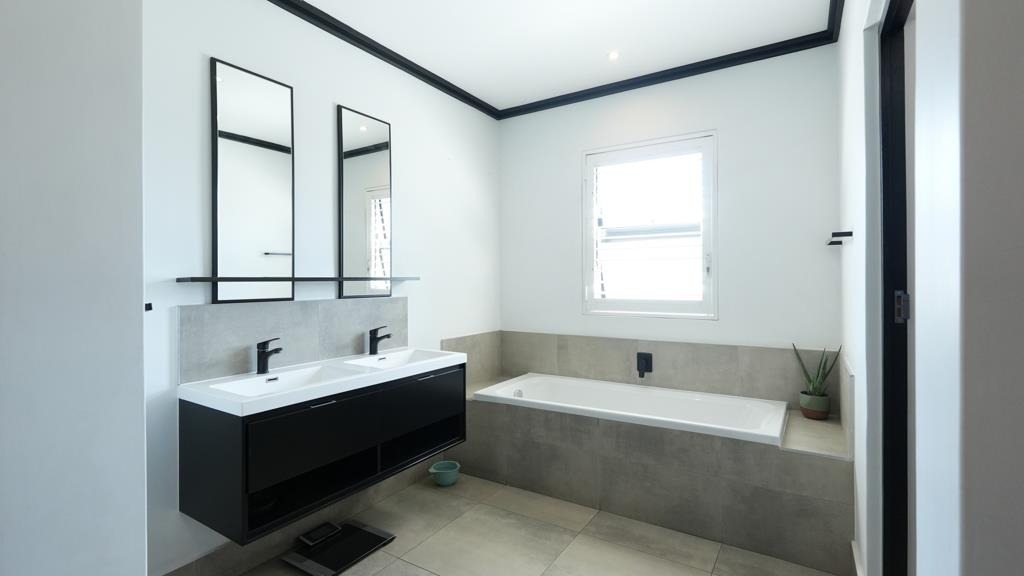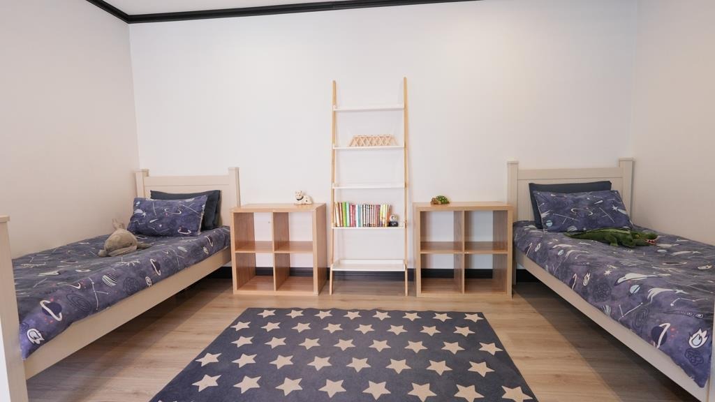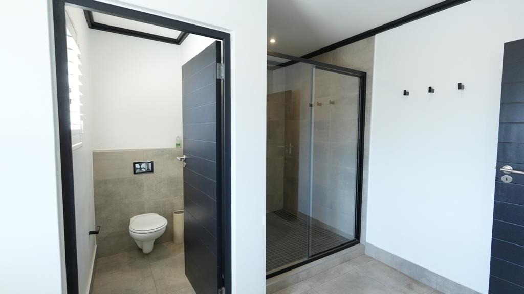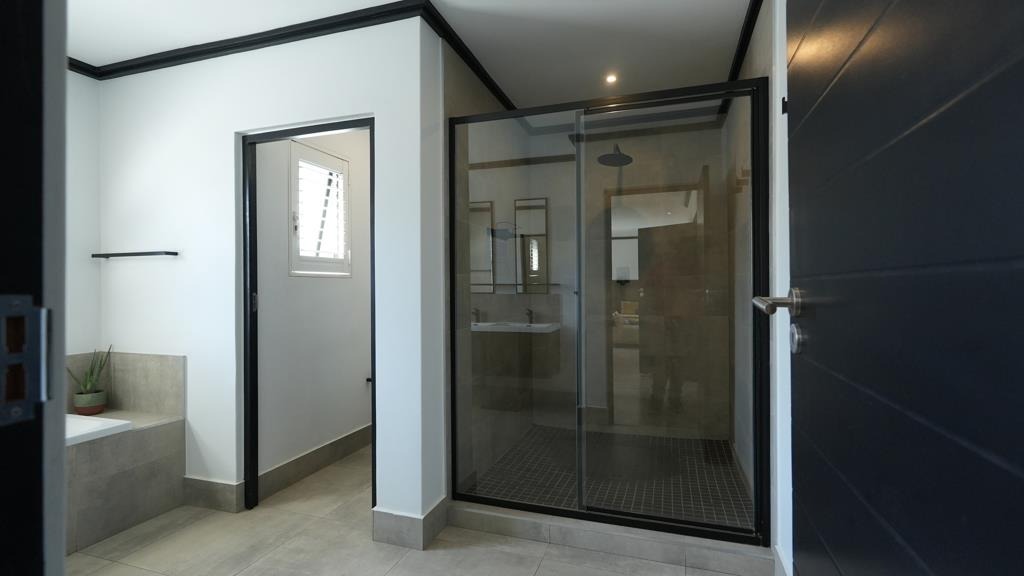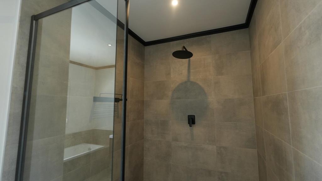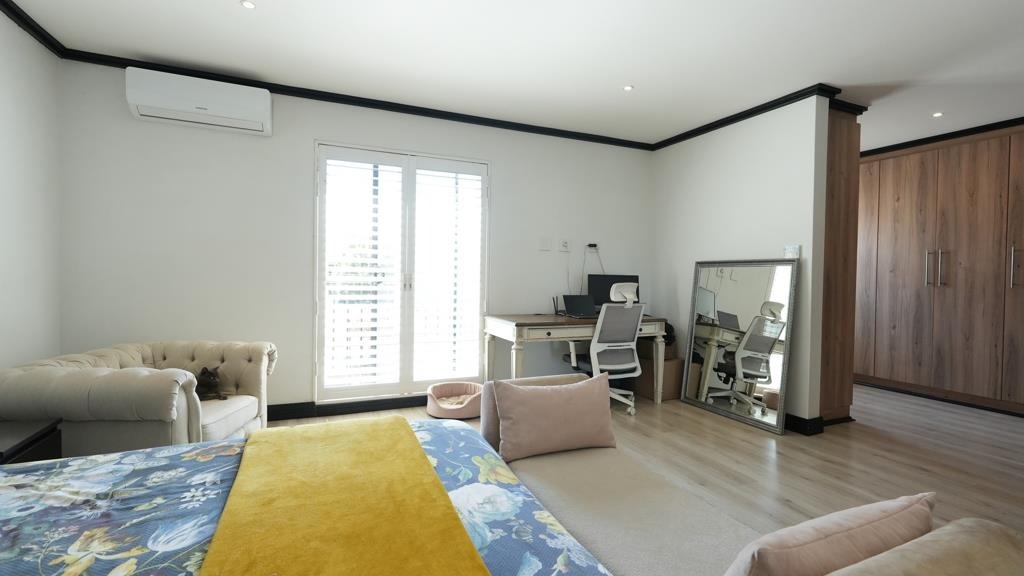 Upstairs, a cozy pajama lounge leads to three beautifully designed en-suite bedrooms. Each bedroom includes built-in cupboards, air conditioning, and modern bathrooms fitted with elegant, contemporary showers.