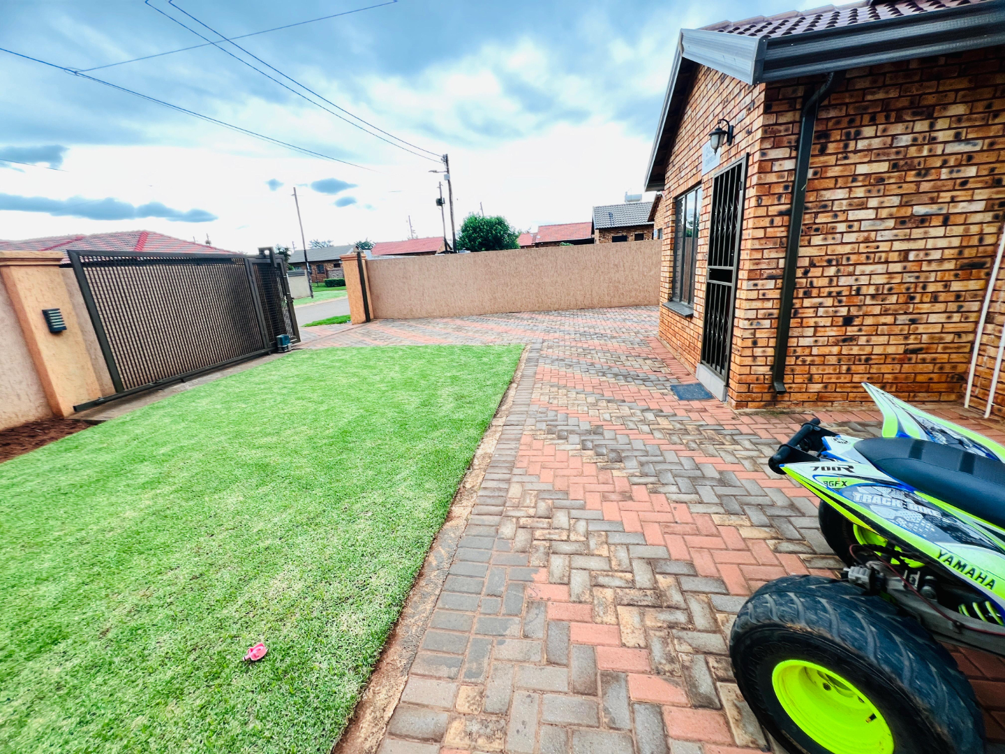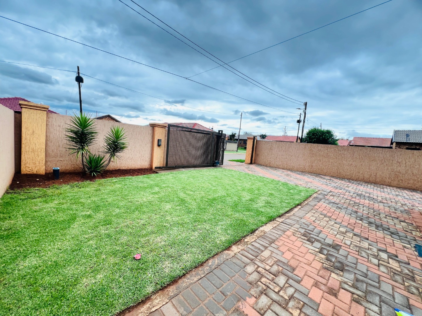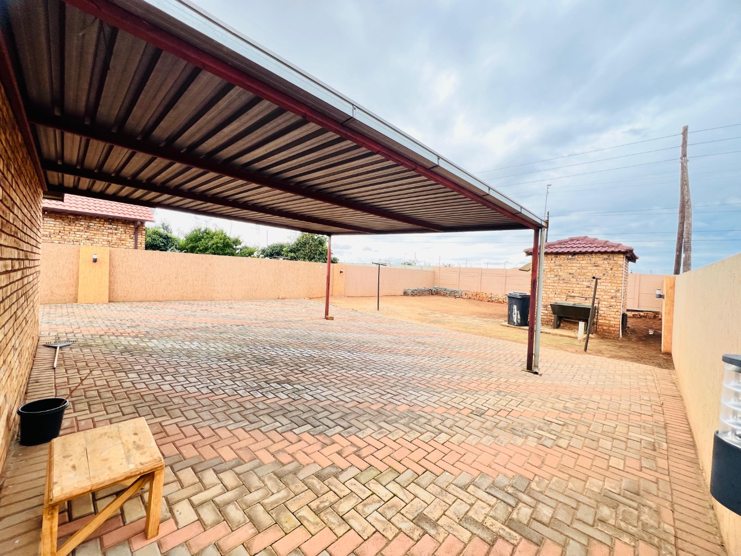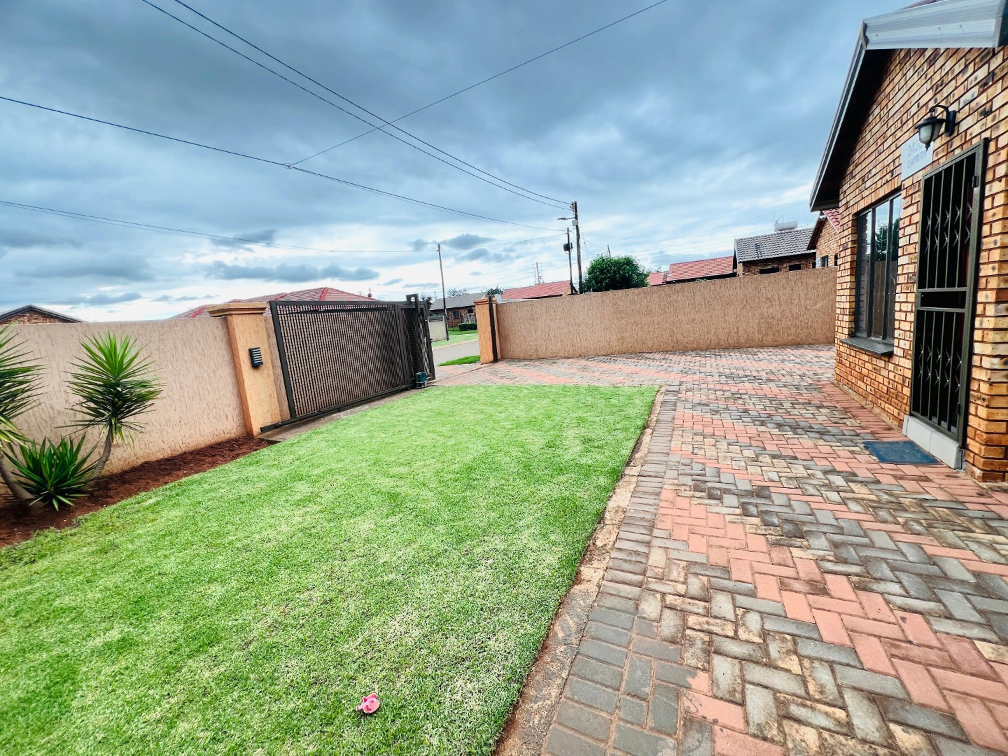 Security is a key feature of this Protea Glen residence. The property is enclosed by high perimeter walls, providing enhanced privacy and peace of mind. Further security measures include a modern access gate and robust burglar bars on all windows, ensuring a safe and protected home for its occupants.