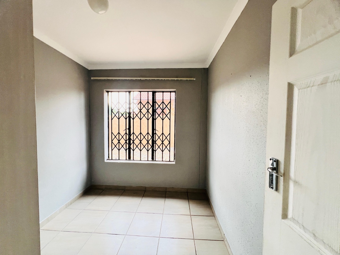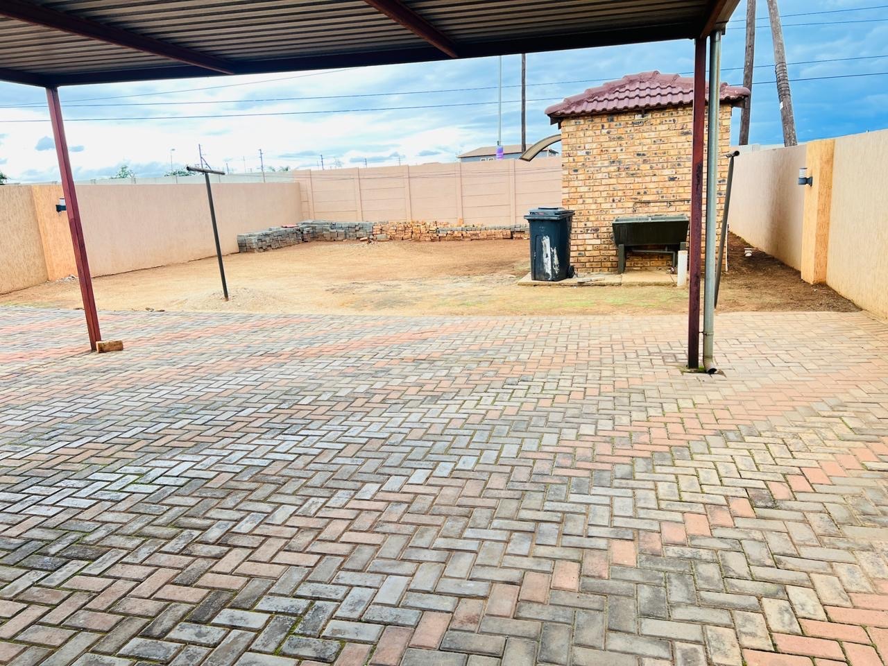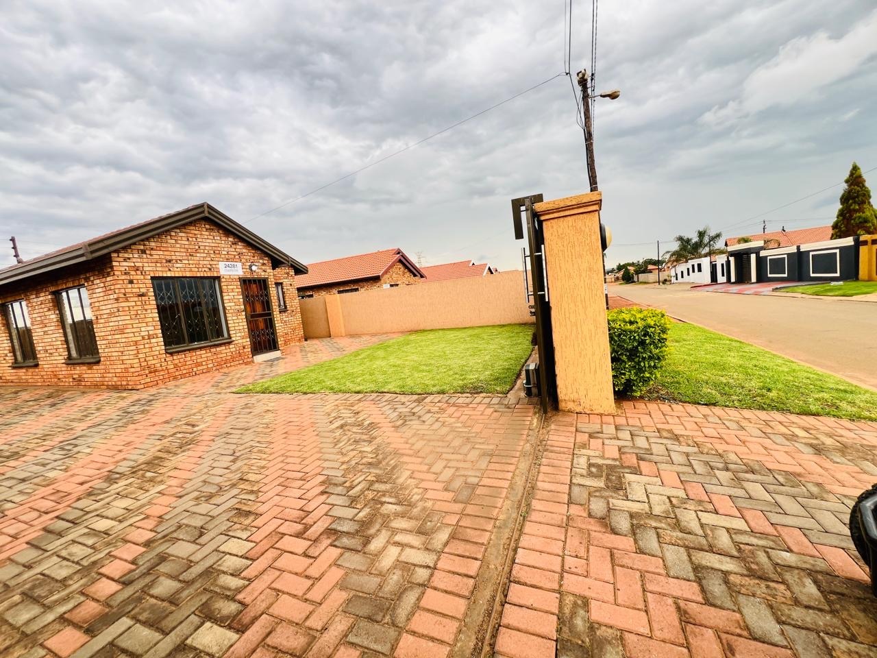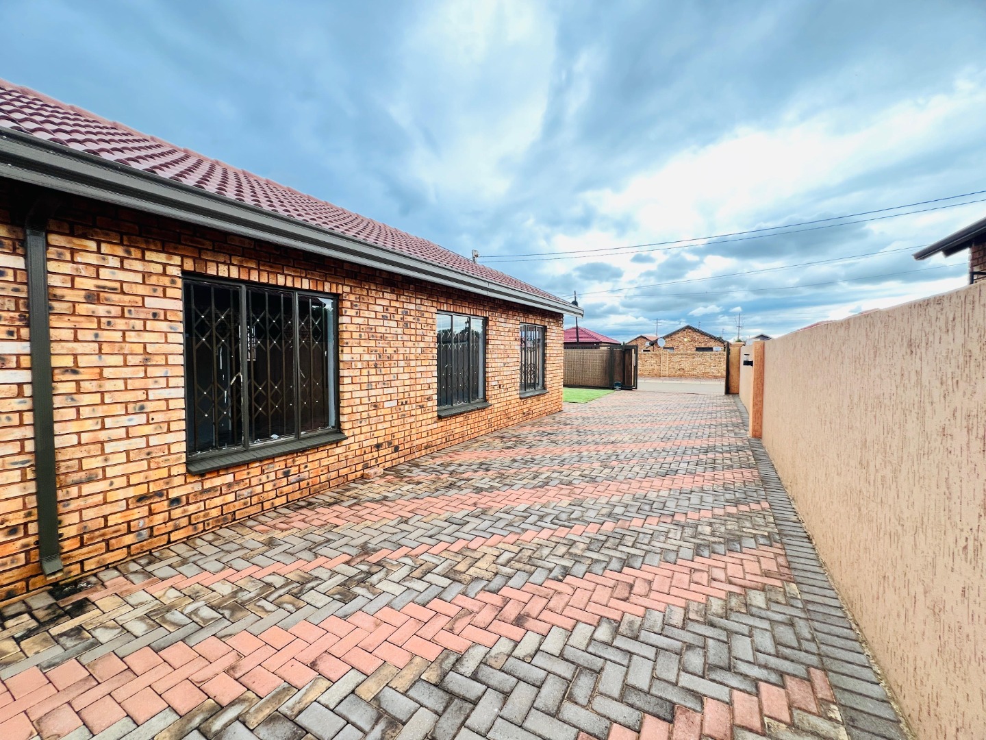 Security is a key feature of this Protea Glen residence. The property is enclosed by high perimeter walls, providing enhanced privacy and peace of mind. Further security measures include a modern access gate and robust burglar bars on all windows, ensuring a safe and protected home for its occupants.