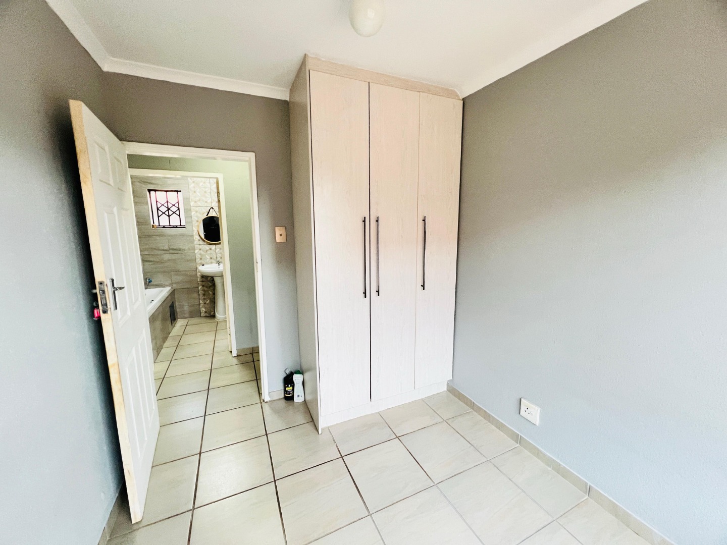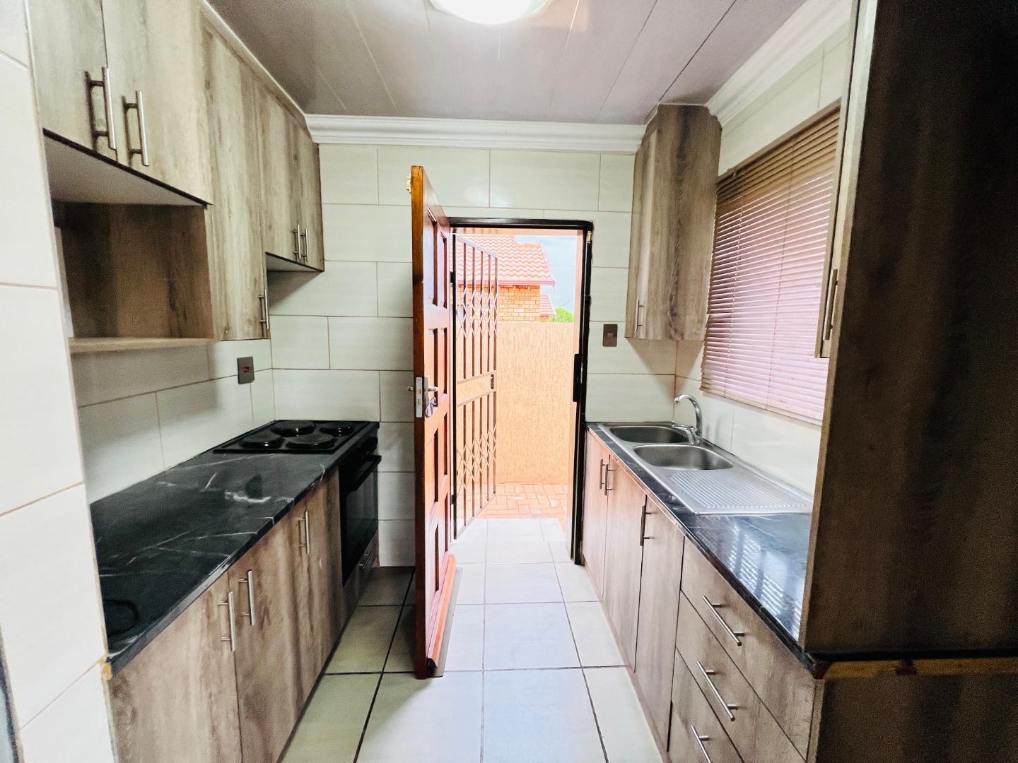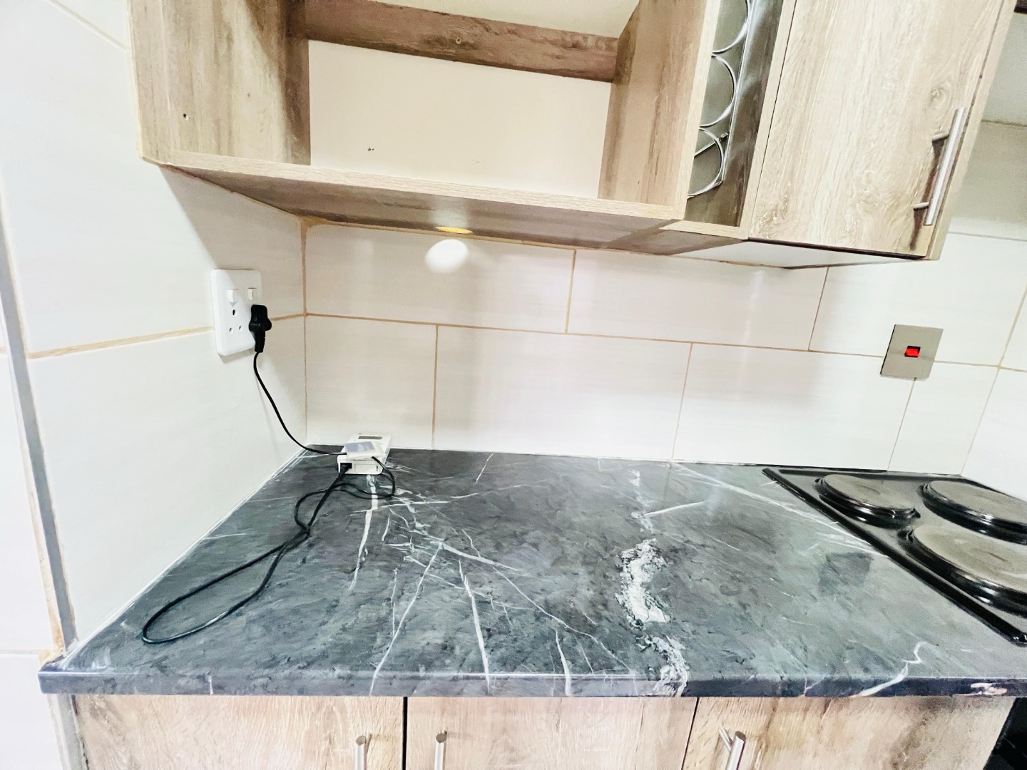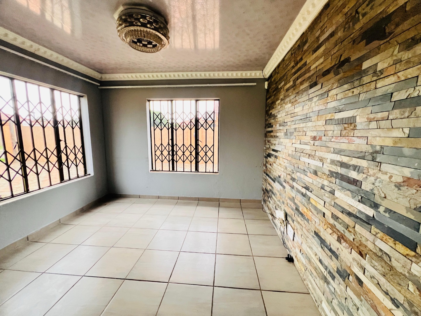This inviting 3-bedroom, 1-bathroom rental home in Protea Glen ext 27, Soweto, offers a comfortable and secure living environment. The interior features durable tiled flooring throughout, ensuring easy maintenance. One room boasts a stylish stacked stone accent wall, adding a modern touch. The functional bathroom is fully tiled with a bathtub, pedestal sink, and toilet, providing a clean and contemporary space. A well-appointed kitchen completes the interior layout, ready for your culinary needs.